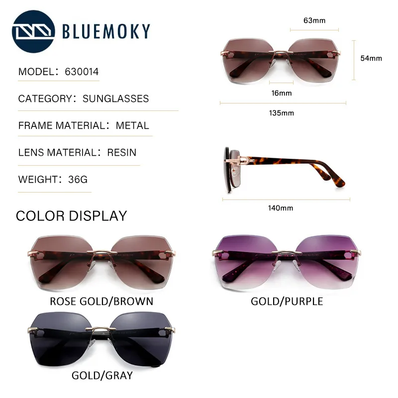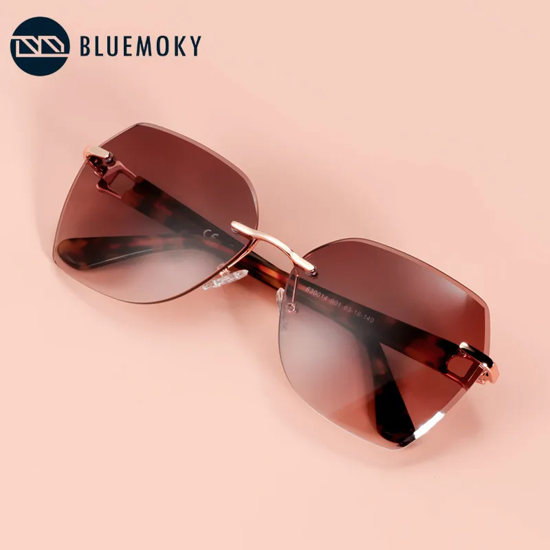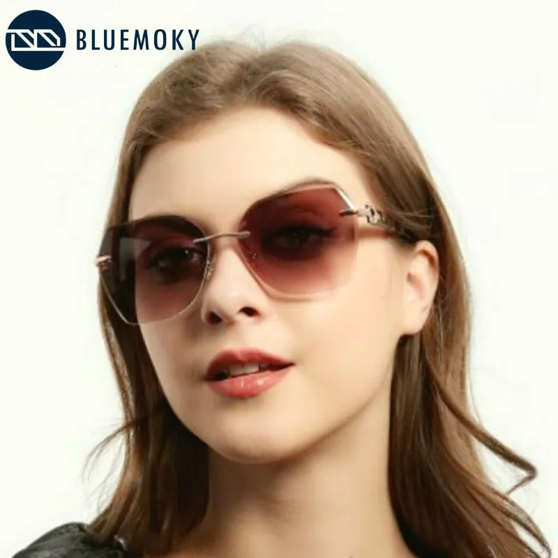 Женские солнцезащитные очки без оправы BLUEMOKY, поляризационные очки-бабочки с градиентом, роскошные брендовые дизайнерские очки с защитой UV400