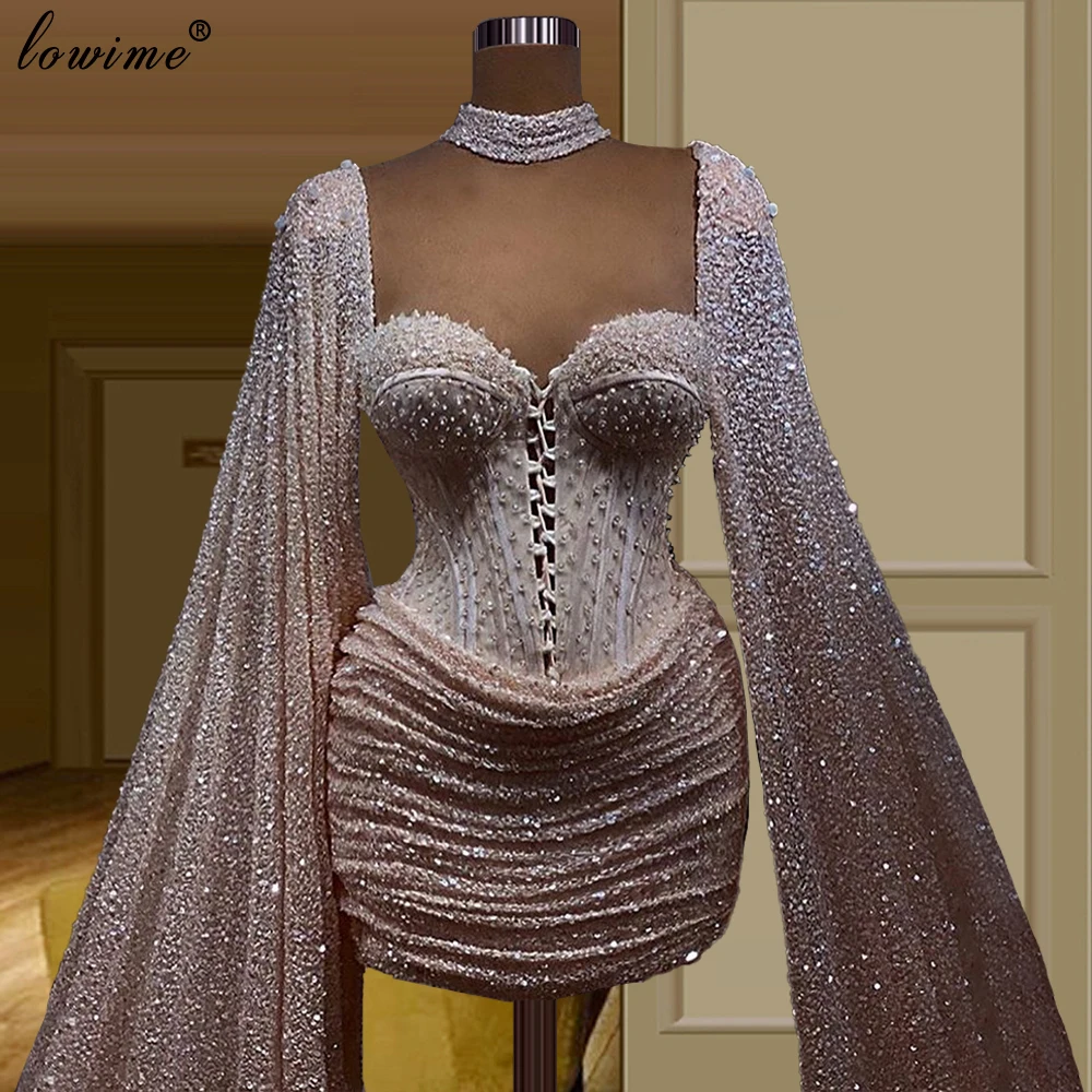 Размера плюс платья для Среднего Востока на выпускной с длинным рукавом, коктейльные платья с блестками и юбкой годе, вечерняя одежда, платья на выпускной для девочек