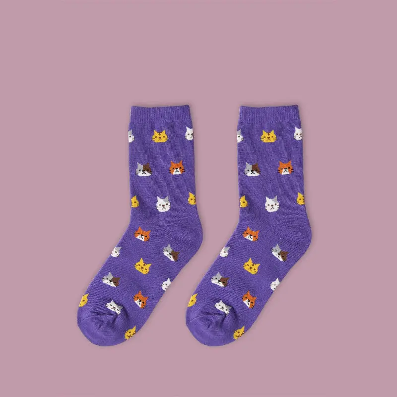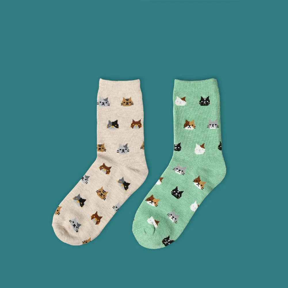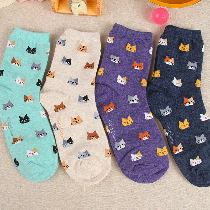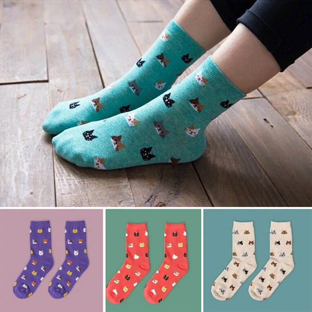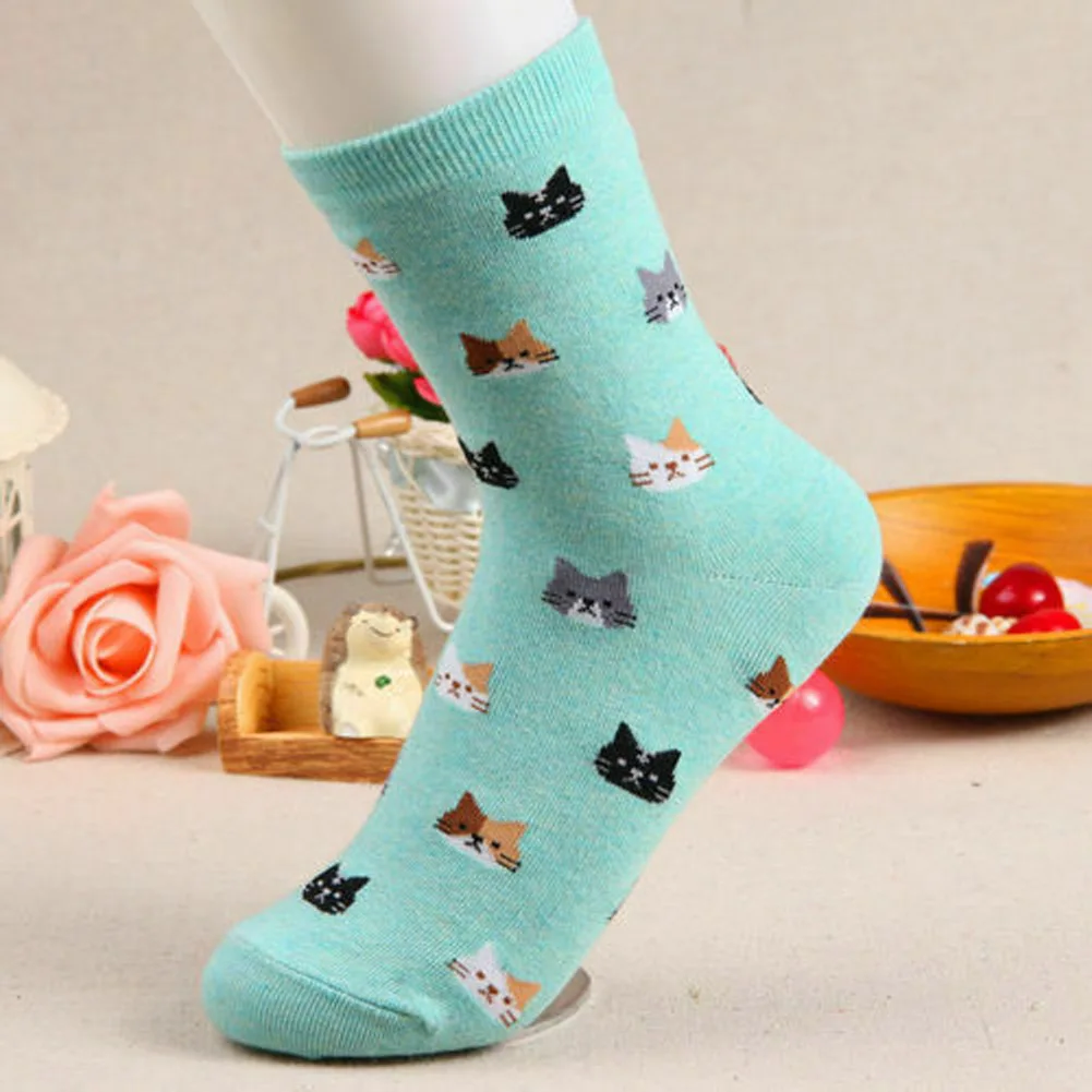 Модные теплые женские милые носки с изображением кота, хлопковые носки с изображением мультяшных животных, 5 цветов, 1 пара, весенне-осенние носки