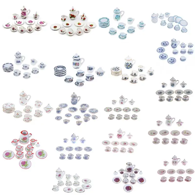 15 шт., набор миниатюрных фарфоровых чайных чашек 1:12, кухонная посуда с цветами, мебель для кукольного домика, игрушки для детей, чайные чашки, кукольный домик
