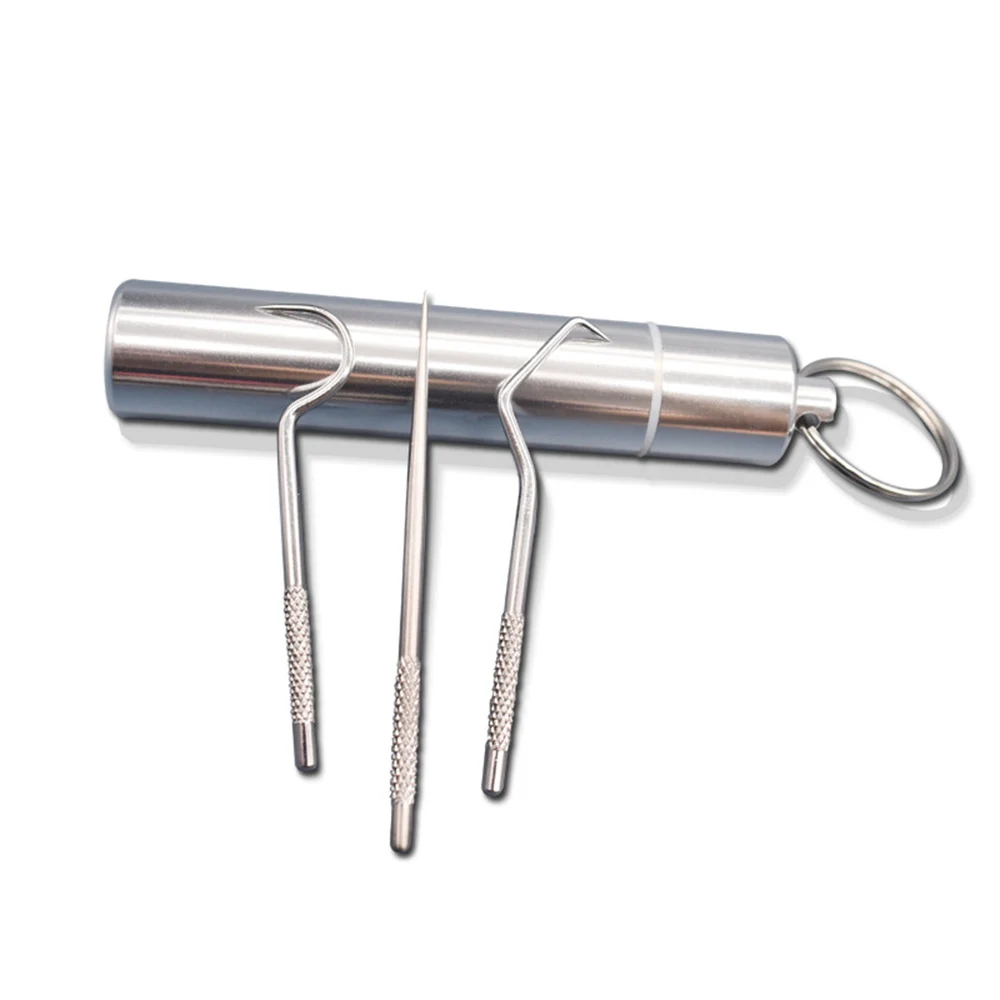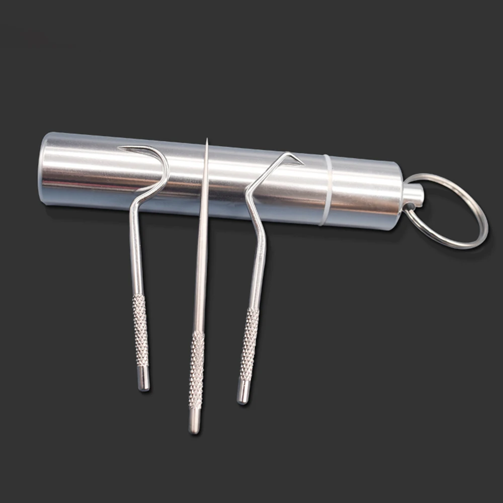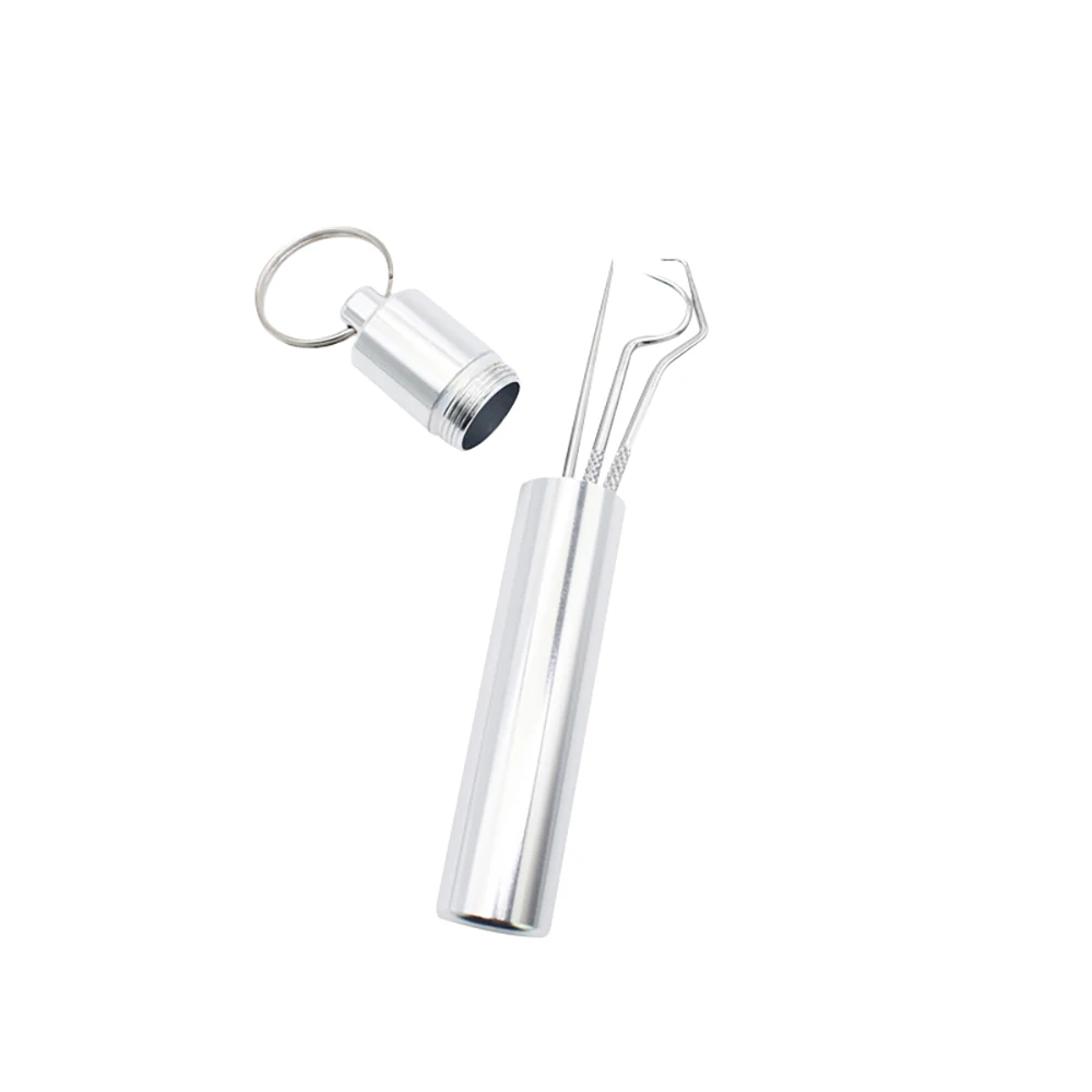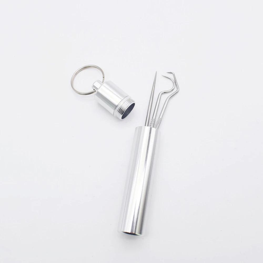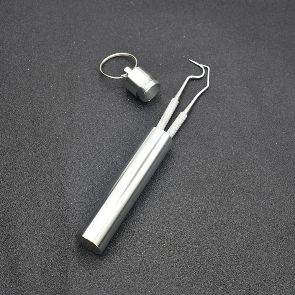 Портативный Карманный держатель для зубочисток из нержавеющей стали, 3 в 1, металлический держатель для зубочисток для пикника, кемпинга, путешествий
