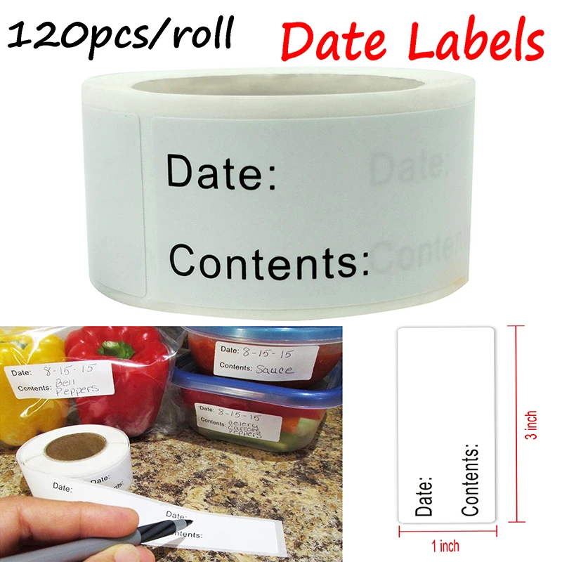 120 шт.рулон Еда ярлыка хранения холодильник с морозильной камерой Еда хранения Дата Содержание наклейки для контейнер олова сумка для косметики упаковка