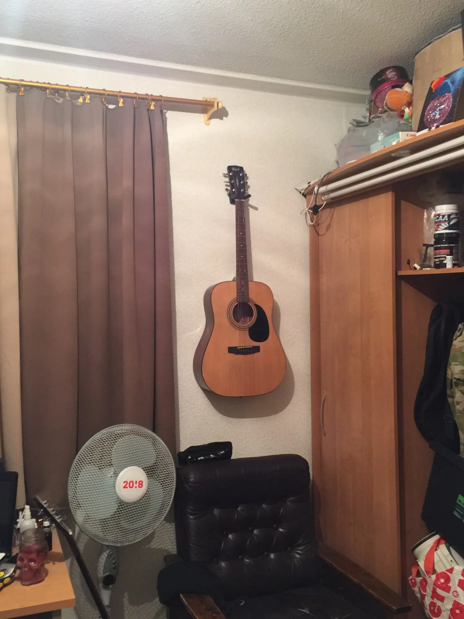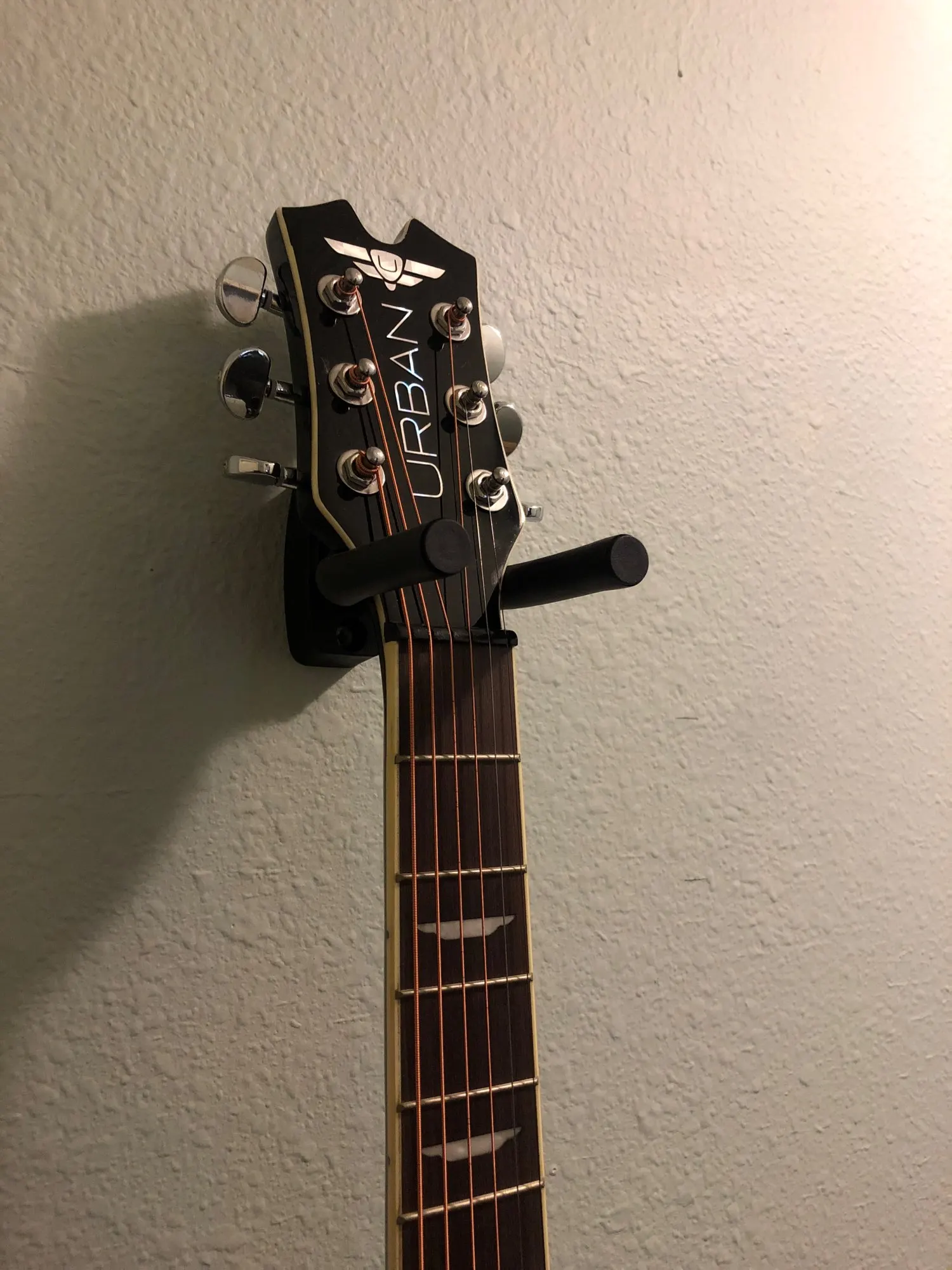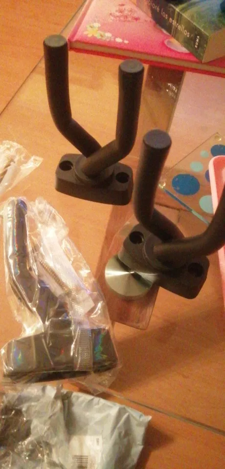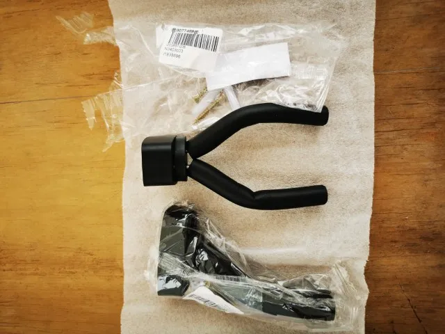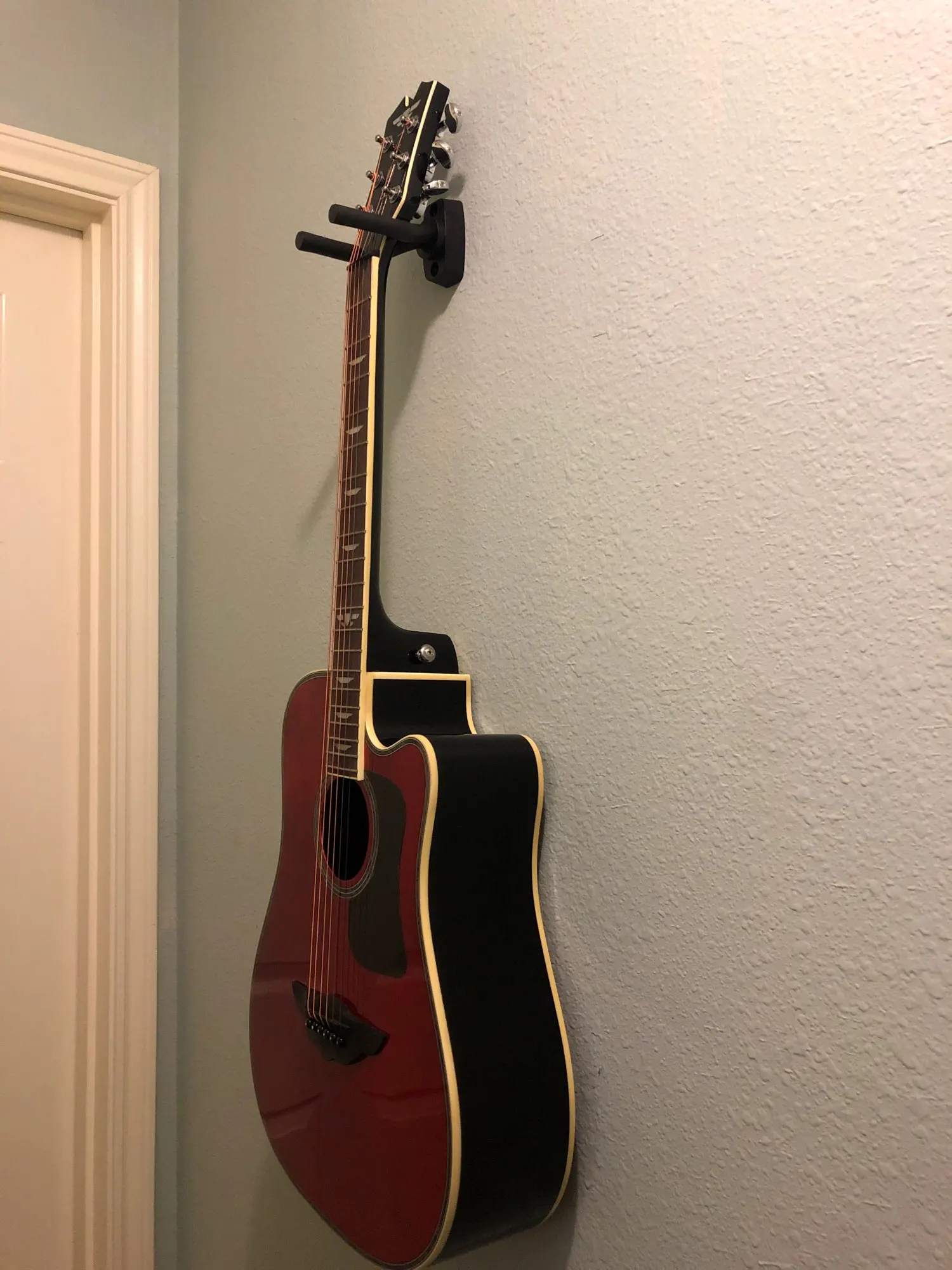 Пока не подвесили гитару . Держатель как прорезиненный. С шурупами .