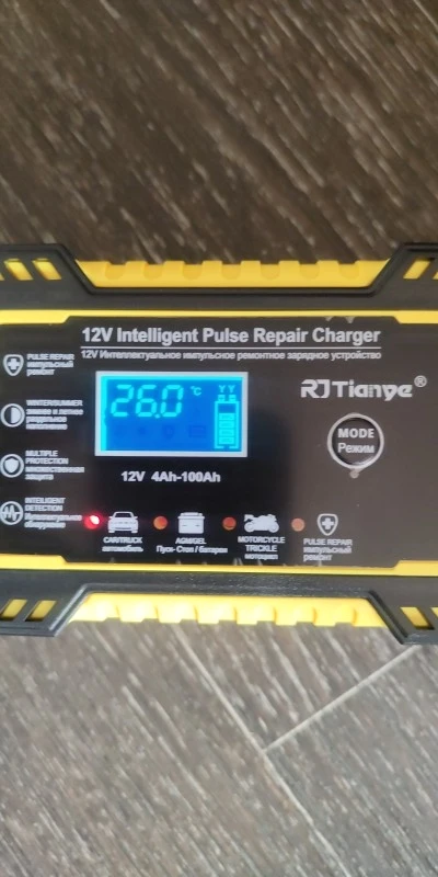 Неплохое зарядное автомат. Тестил дней 5, как подзарядное для АКБ для автономки. Автономка тянет 13А в момент запуска. Максимальный ток выдаваемый этим зарядным - 8,6А. Напряжение что пишет на экране 14,5В - от балды, не знаю где оно его меряет - по факту на клеммах АКБ растет до 15В. Сильно посаженый АКБ с низкой плотностью электролита вы этим зарядным не зарядите (в смысле чтобы поднять плотность до 1,27 - для этого нужен вольтаж выше 16В), но хороший АКБ периодически подзаряжать даже на авто (не снимая клемм с АКБ) - хороший вариант. Недостаток - после как показало FULL (зарядка окончена) если даже будете разряжать АКБ режим зарядки не запустится, пока не переподключите крокодилы или выключите/включите зарядное. Пришло СДЭКом в Беларусь прямо к дому.