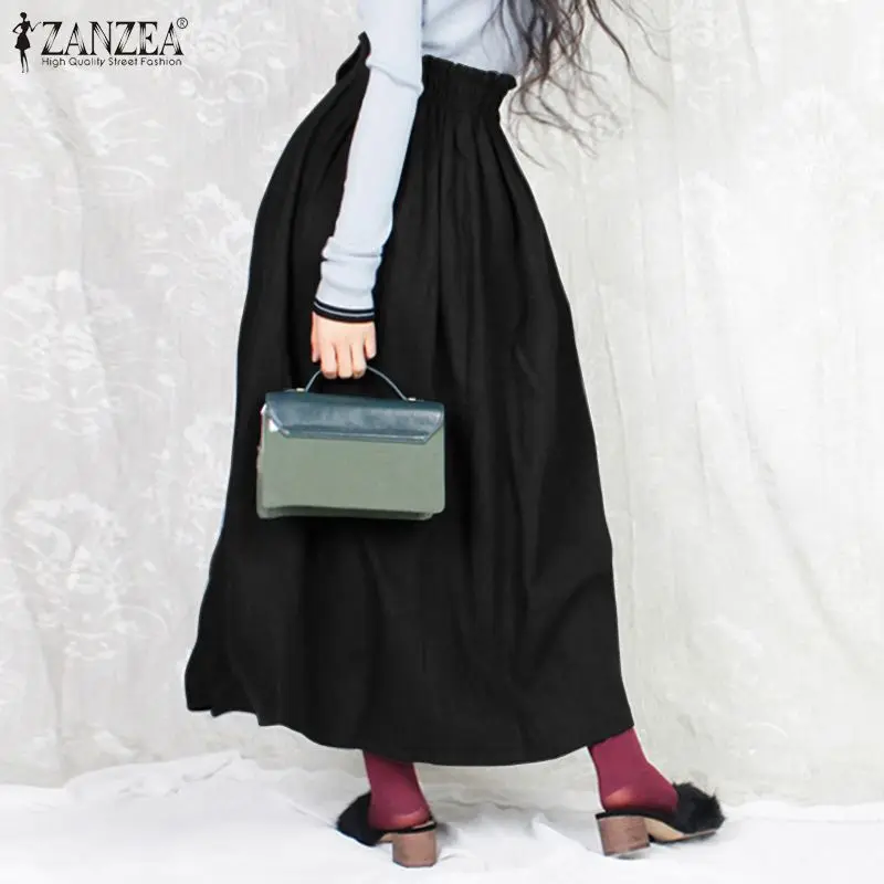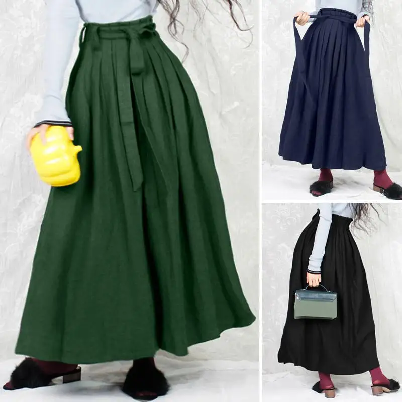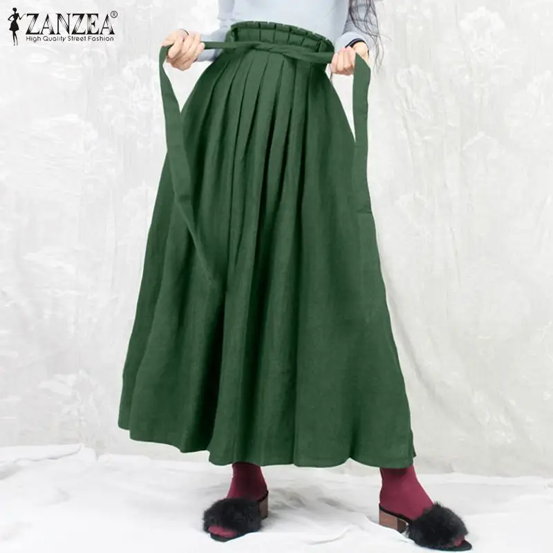 Юбка ZANZEA Женская винтажная однотонная, модная Длинная Элегантная плиссированная юбка макси с высокой талией и поясом, 2021