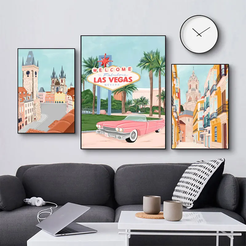 В скандинавском стиле Postesrs и принты, городские принты, настенные художественные уличные изображения для дома, гостиной, украшения, картины