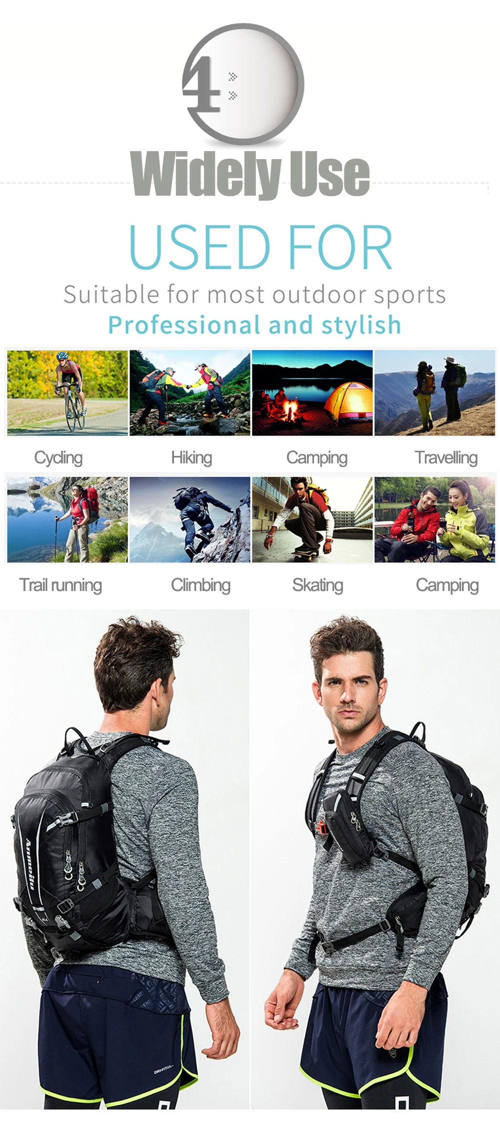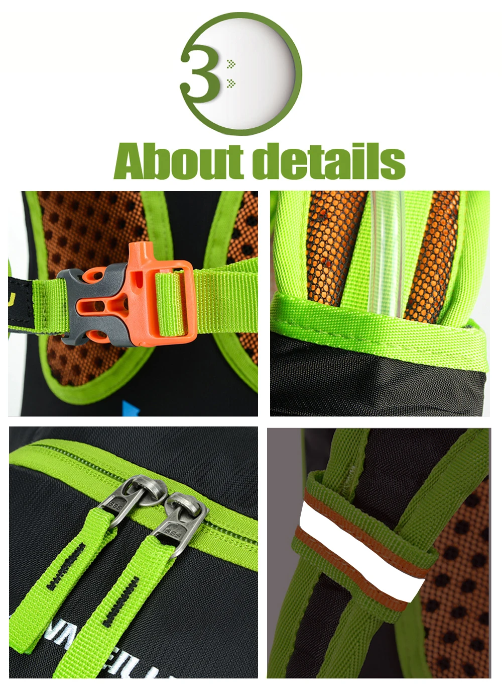Продуманный дизайн с высокой нагрузкой на талию, застежкой-свистком, карабинами, очень гладкими молниями, светоотражающими полосками, регулируемым плечевым ремнем и ремнями на бедрах. Удовлетворяйте ваши ежедневные требования легко, тем временем обеспечивая вашу безопасность в максимальной степени.