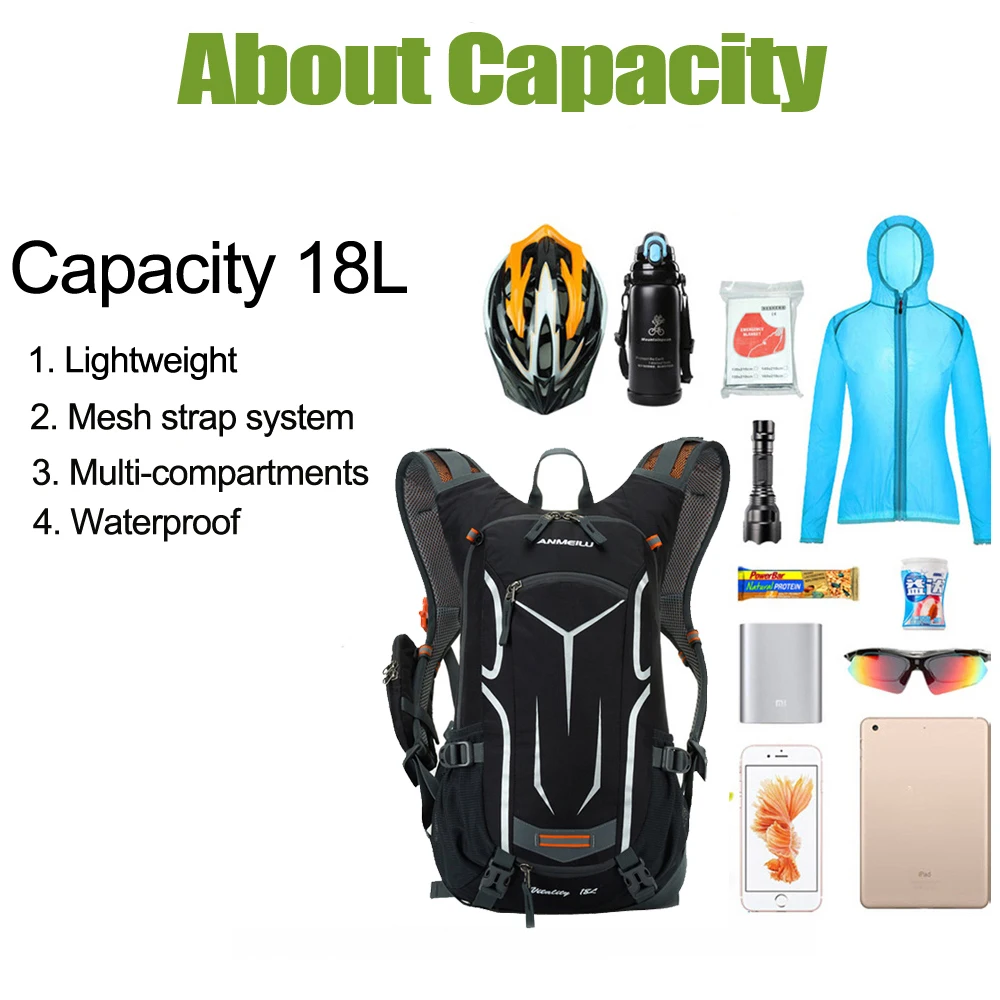 Дышащий водонепроницаемый рюкзак для бега, велосипедная сумка 18 л с сумкой для воды, для походов, кемпинга, горных велосипедов