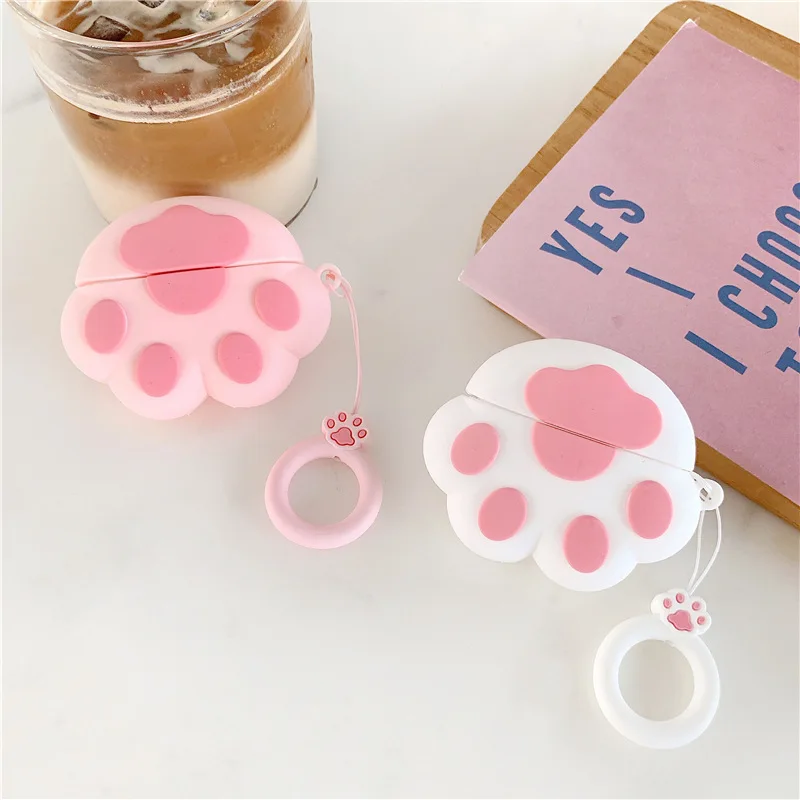 Симпатичный 3D чехол с кошачьими лапками для беспроводных наушников, чехол для Airpods Pro девушек, Розовый силиконовый чехол с мультяшным принтом Feetprint для Airpods 123