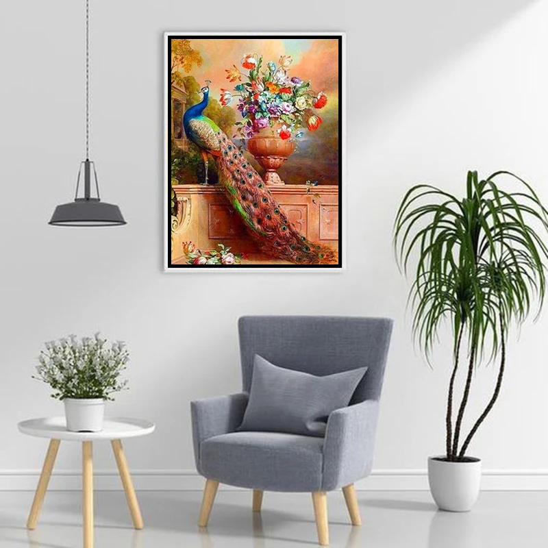 Алмазная живопись сделай сам, павлин, полная квадратнаякруглая выши...