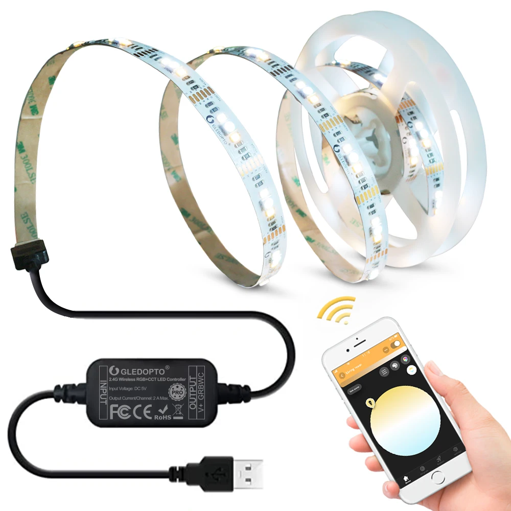 Мини-контроллер Gledopto Zigbee RGBCCT, Светодиодная лента 2 м, 5 в...