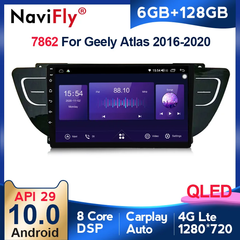 Автомобильный мультимедийный плеер NaviFly 1280*720QLED, 8 ядер, 6G, 128G, Android 10, для Geely 2016 - 2020 DSP 4GLTE carplay BT5.0