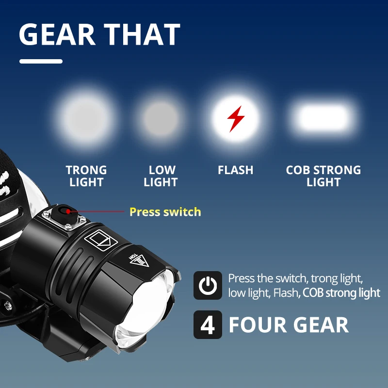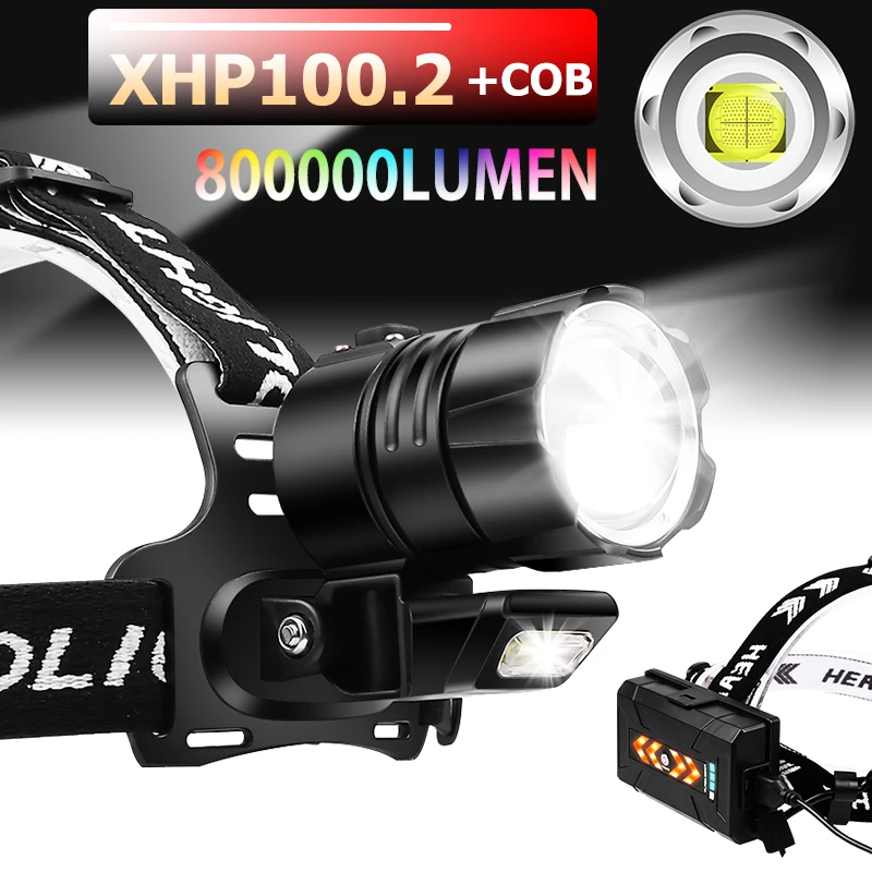 Налобный фонарь XHP100.2, светодиодный фонарь с COB матрицей, 800 лм, зарядка через USB, 3x18650