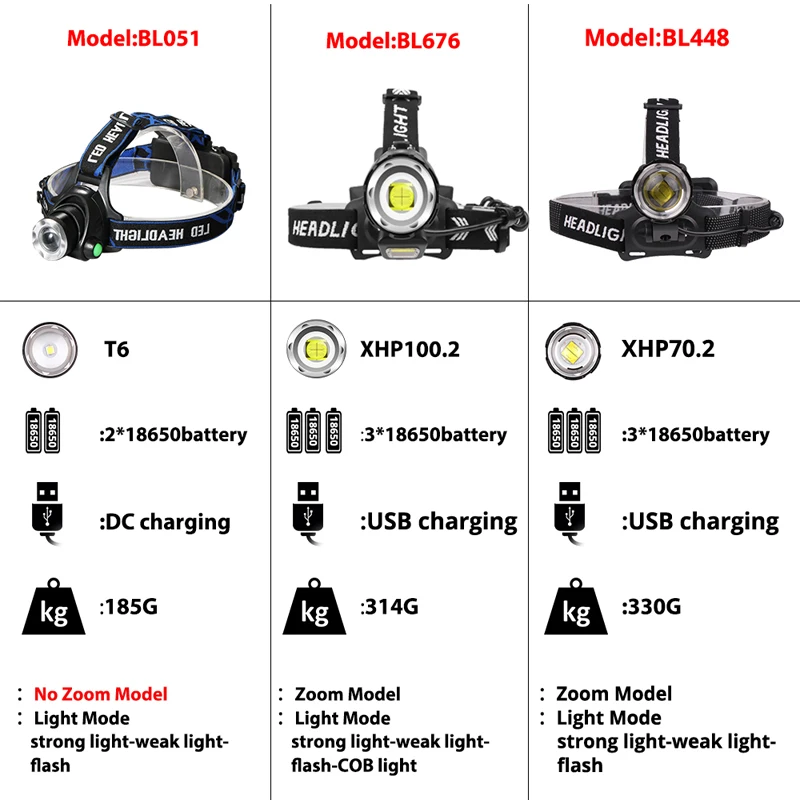 Номер модели: BL448Модель лампы: XHP70.2Требуемая модель аккумулятора: аккумулятор 3x1865 0 (не входит в комплект)Материал: алюминиевый сплавМощность питания: 3x3,7 v 18650 литиевая батареяСпособ зарядки: micro USB зарядкаРежим масштабирования: телескопический зумРежим переключения: сильный светильник-низкий светильник-вспышкаUsb-зарядка: вход/выход.Вес нетто: 330 г