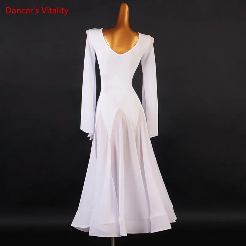 Платье для бальных танцев с V-образным вырезом, большие качающаяся длинная юбка, расклешенные рукава, высококачественная одежда для тренировок для взрослых и детей