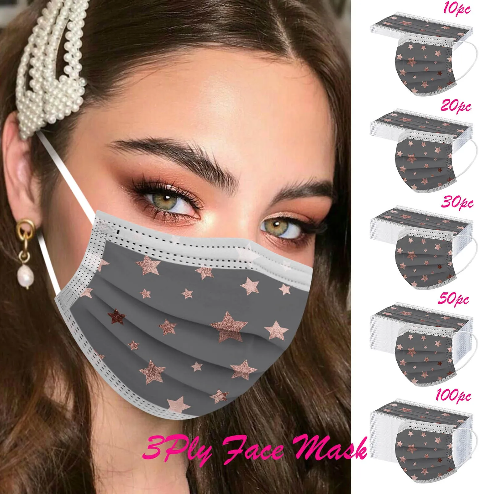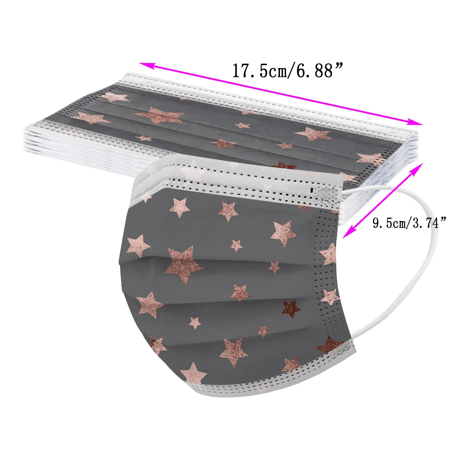 Маска для лица одноразовая трехслойная Нетканая, модная мягкая маска для взрослых с принтом звезд, закрывающая рот, 10 шт.
