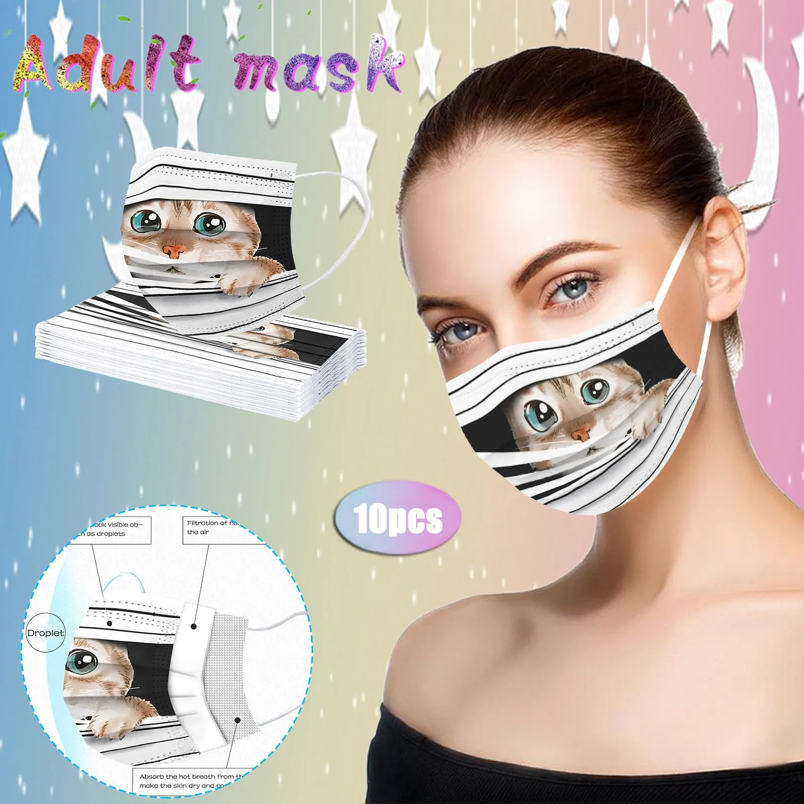10 шт. дизайнерская Маска для взрослых кошек животных Цифровая 3-слойная защитная дышащая Маска для женщин Хэллоуин косплей Рождество