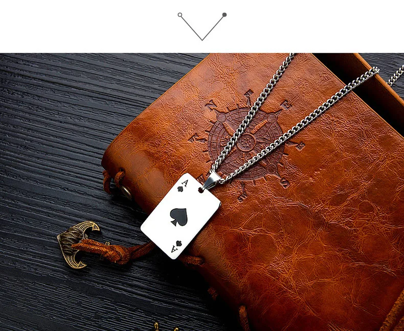 Мужское ожерелье с кулоном в виде покера, из нержавеющей стали