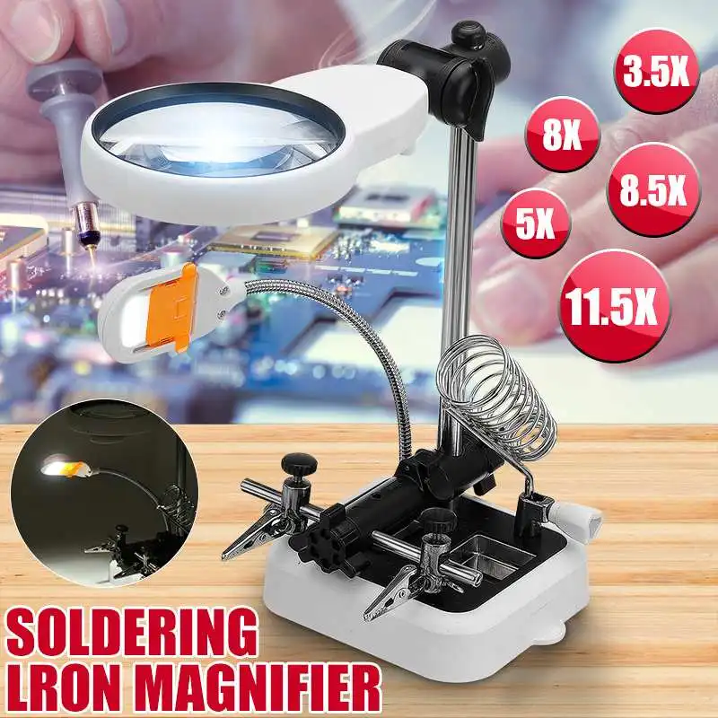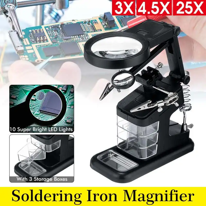 Сварочное увеличительное стекло со светодиодный светильник кой 3X-25X, Вспомогательный зажим, лупа, Настольная лупа, ручной паяльник, инструмент для ремонта