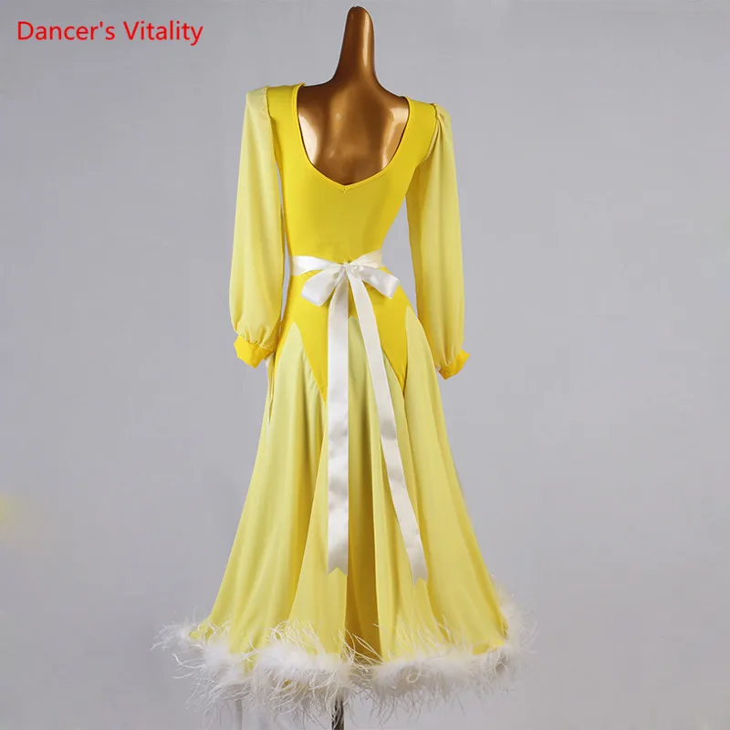 Платье Waltz с круглым вырезом и широкой юбкой, одежда для выступлений с длинными рукавами, Высококачественная индивидуальная Одежда для взрослых и детей, одежда для соревнований