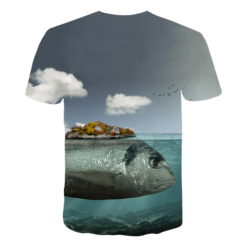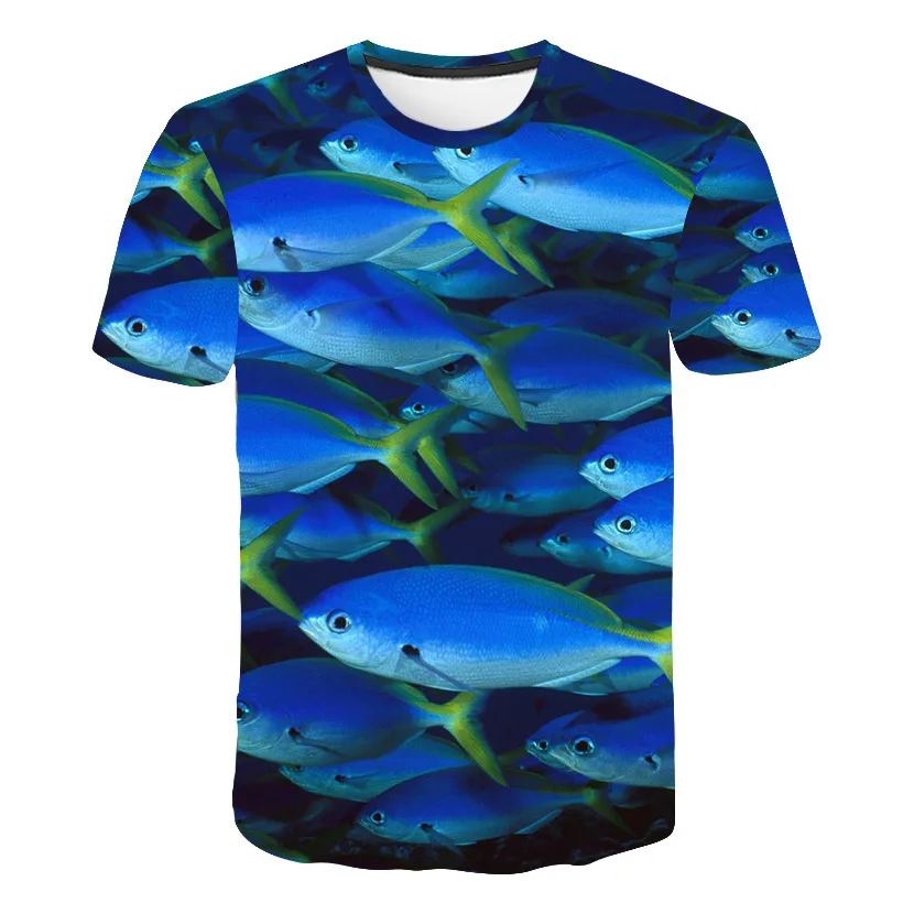 Летняя футболка с 3D-принтом рыбы, футболка с круглым вырезом для м...