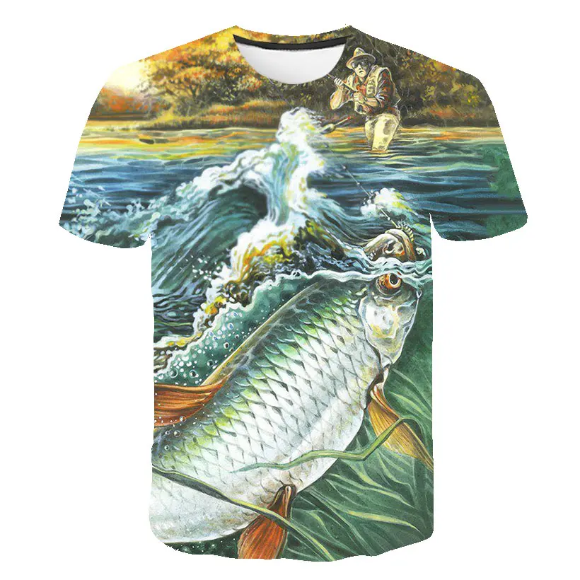 Повседневная футболка для рыбалки, новинка, футболка с 3D принтом р...