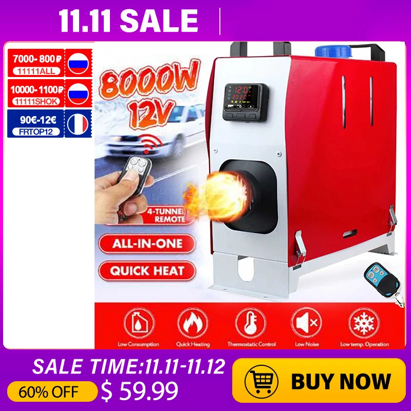 1. Экономия пространства: все в одном блоке. Обогреватель может сэкономить место и легко перемещаться.2. Предотвращение повреждений: избавьтесь от повреждения автомобиля, вызванного резким падением температуры.3. Низкий уровень шума: обработка шумоподавления нагревателя с минимальным уровнем шума.4. Прочный нагреватель: низкое топливо и энергопотребление в течение более длительного периода эксплуатации.5. Предварительная установка температуры: плавный и автоматический комнатный контроль температуры с установкой температуры.ОписаниеНазвание: все в одном 12 В 8 кВт Дизельный подогреватель воздухаОсобенности:Легко устанавливается и снимается.Простота в обслуживании.Компактный дизайн хорошо подходит для использования в различных узких пространствах.Два режима работы, включая режим кондиционера и режим нагревателя.С непрерывным мониторингом и диагностической системой.Топливо поставляется из собственного бака транспортного средства.Подходит для различных дизельных механических транспортных средств, таких как автомобили, автобусы, RVs, грузовики, инженерные транспортные средства и т. д.Характеристики:Материал: металл и пластикЦвет: белый; Красный и белыйРазмеры: около 15,3 × 39 × 41,5 см (6 × 15,4 × 16,3 ")Напряжение: 12 ВМощность: 8000 ВтТопливо: ДизельПолный коэффициент сгорания: 100%Расход топлива: 0,21 ~ 0.54лРабочая температура: -40 °C ~ 80 °CУпаковочный лист:1 * воздушный Нагреватель (ЖК-термостат)1 * пульт дистанционного управления (батарейки в комплект не входят)1 * воздуховодная труба1 * впускная труба1 * выхлопная труба1 * набор аксессуаров для крепленияПримечания:1. Возможны отклонения на 1-5 мм вследствие измерений вручную. Перед размещением заказа, пожалуйста, внимательно ознакомитесь со всеми условиями.2. Цвета могут отличаться от цветов на разных дисплеях, поэтому, пожалуйста, поймите.