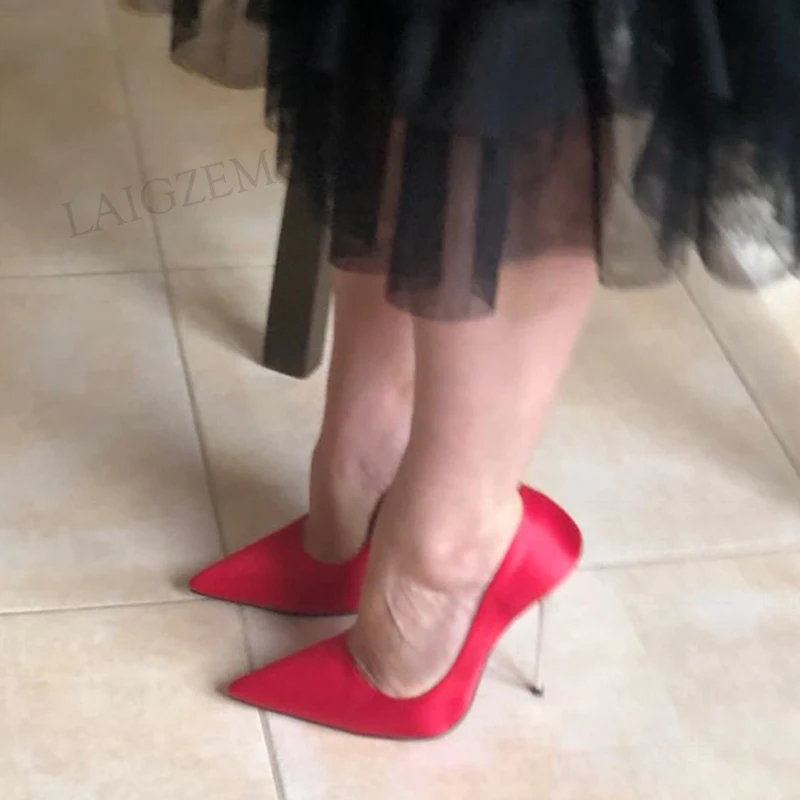 BERZIMERженские туфли-лодочки на высоком металлическом каблуке 12,5 см с насосы носком женские свадебные туфли вечерние Большие размеры 41, 44, 46