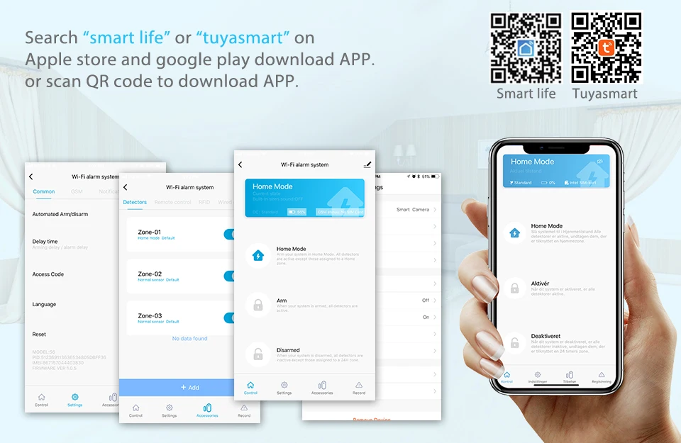 -Arm / disarm системы с помощью SMS, телефонного звонка или приложения (на iOS или Androrid)
