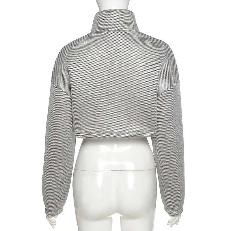 Куртка женская однотонная, пикантный жакет с открытым пупком, верхняя одежда на молнии с высоким воротником и карманами, Y2K, зима 2021