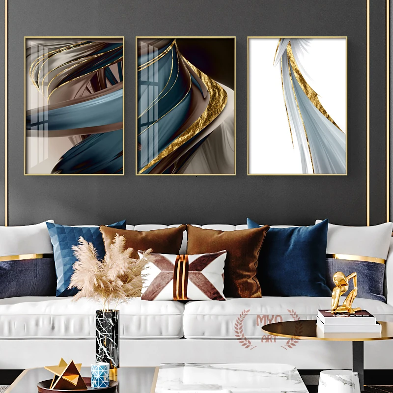 Абстрактный настенный плакат синего и золотого цвета в современном ...