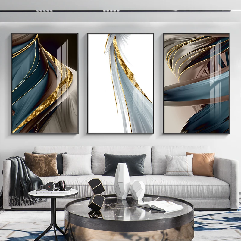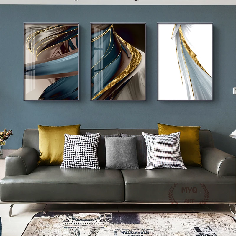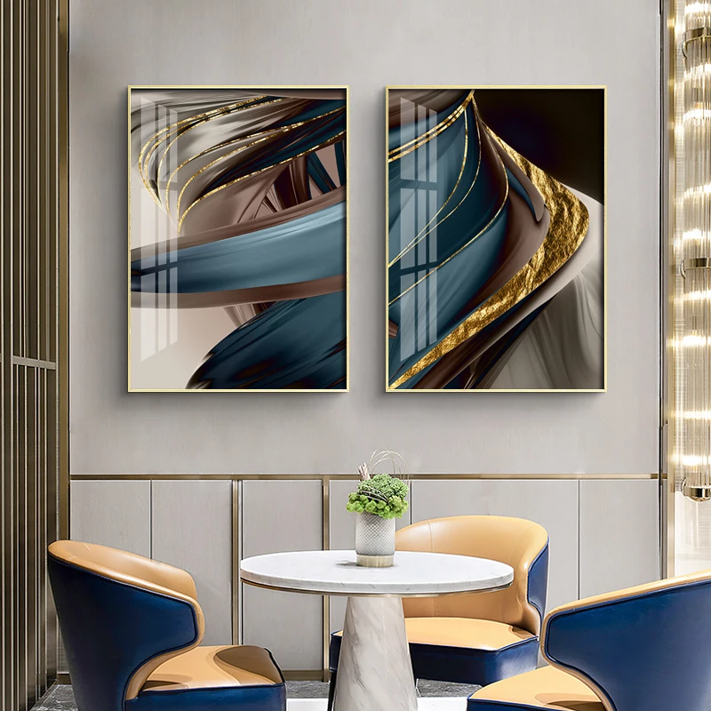 Абстрактная Золотая фольга, холст, живопись, синие плакаты, совреме...
