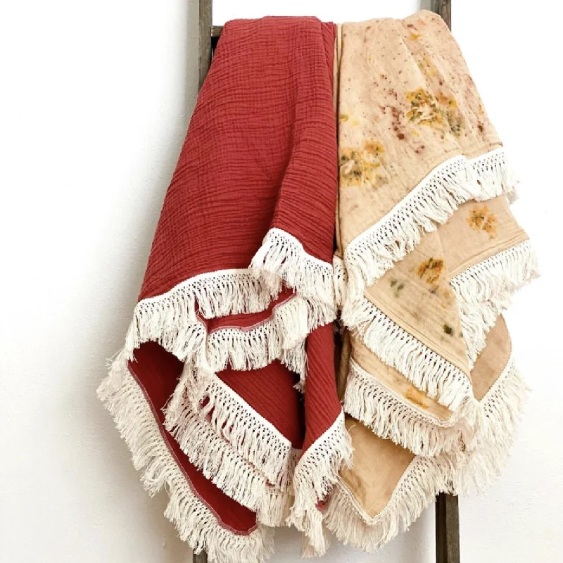 Муслиновое хлопковое детское одеяло с бахромой, 2-слойное, для пеле...