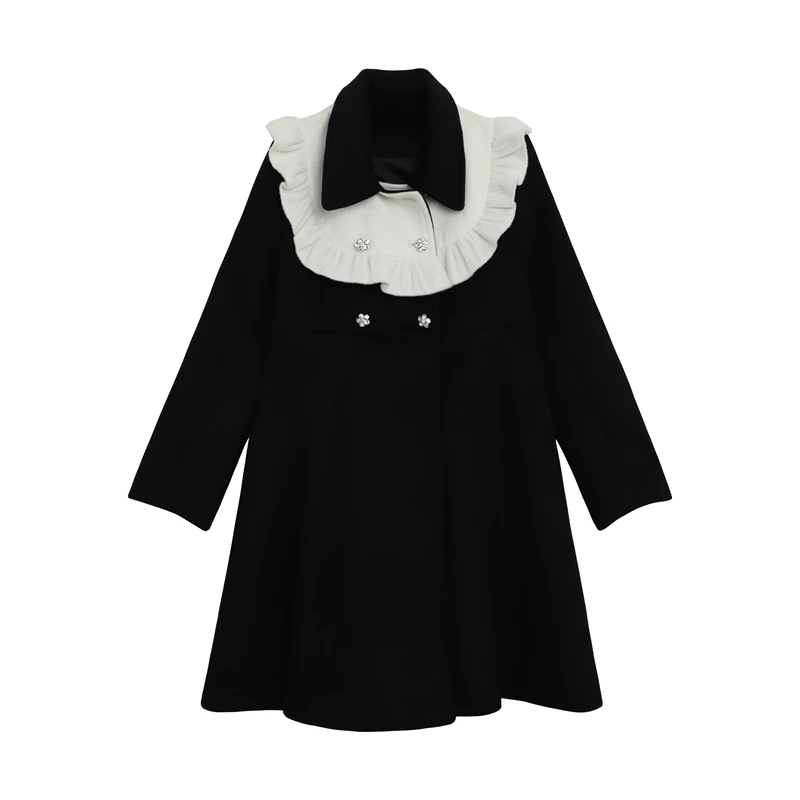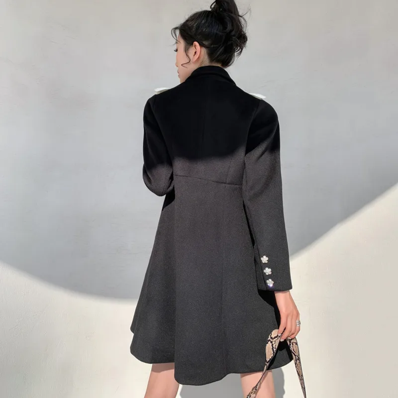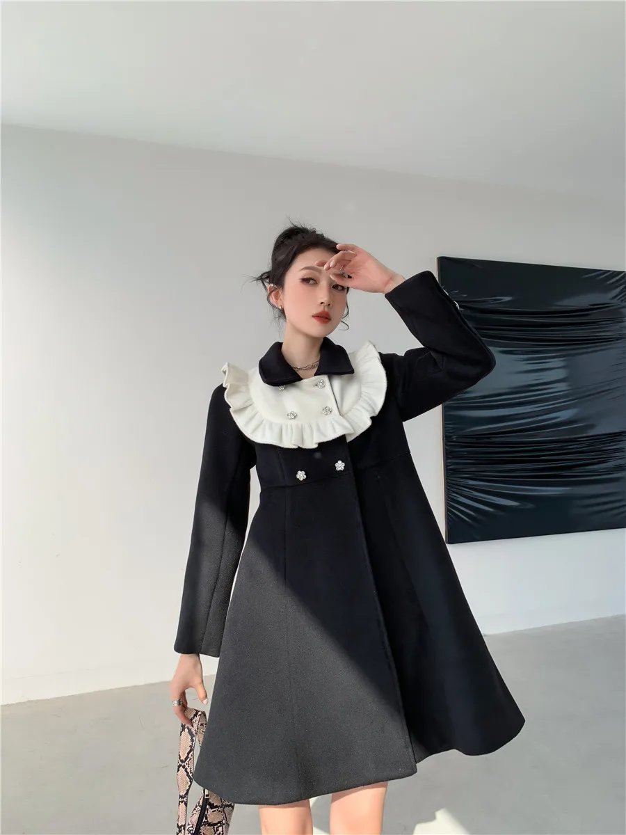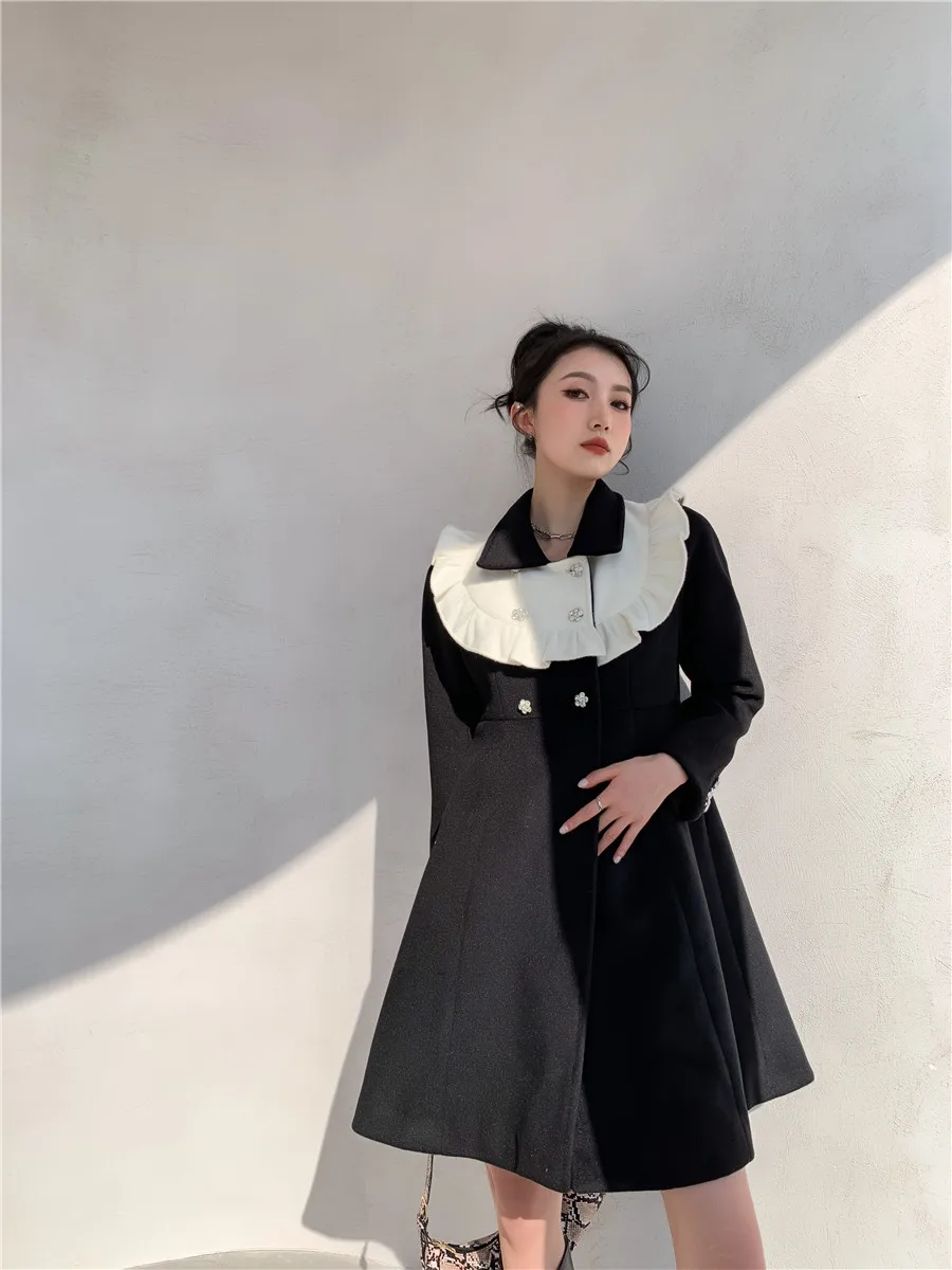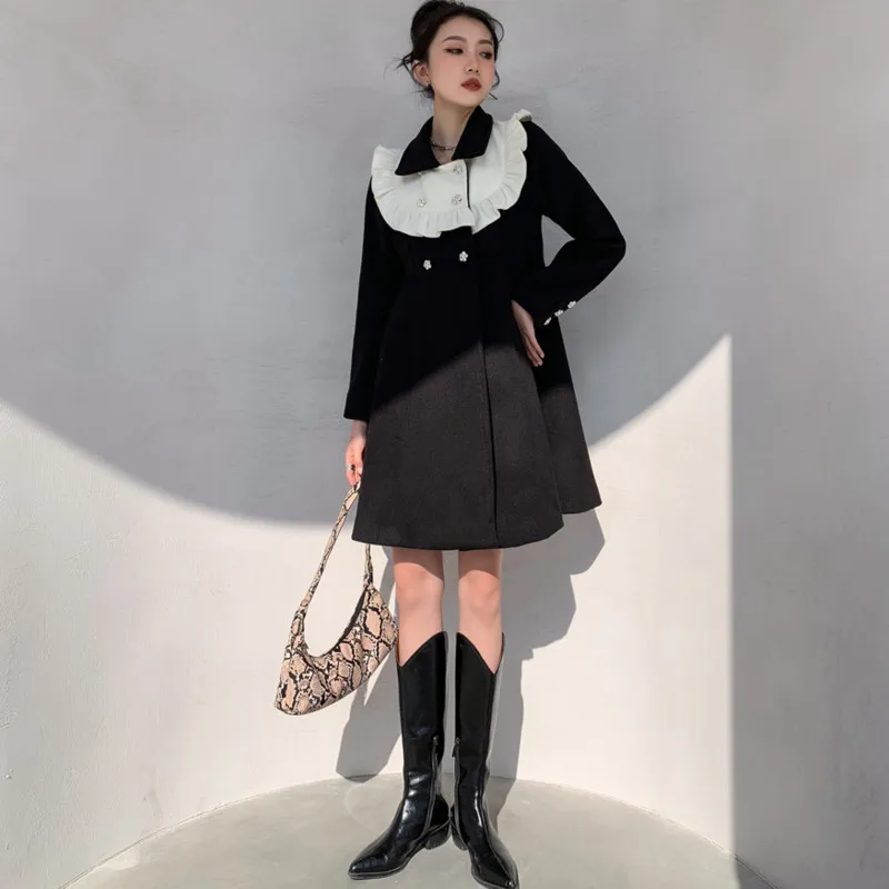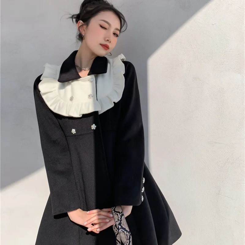 LANMREM 2021 Ранняя весна винтажное темпераментное платье с длинными рукавами стильное черное шерстяное пальто с двумя пуговицами для женщин 2A3168
