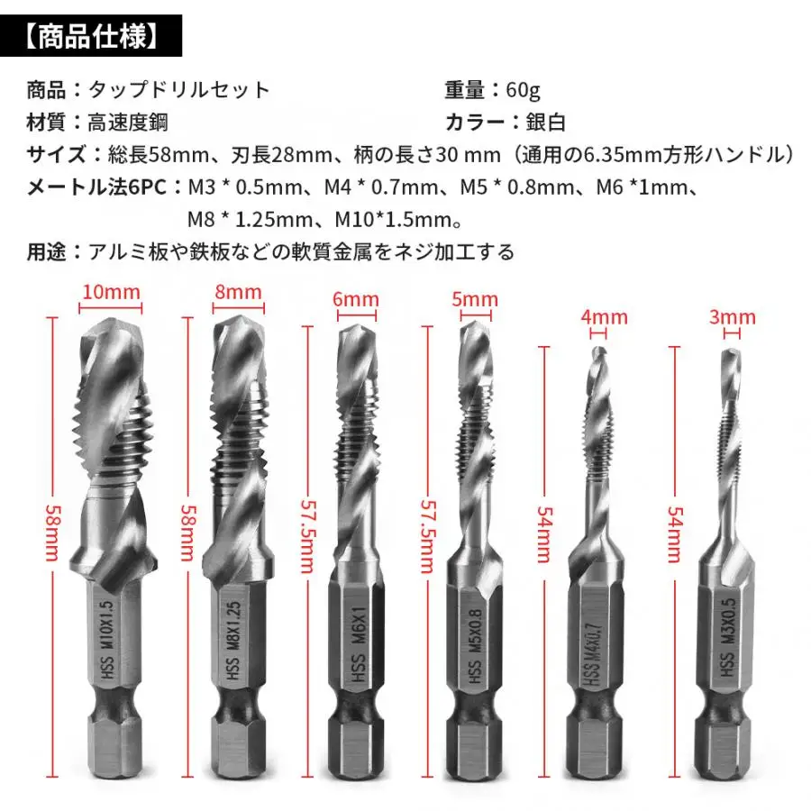 Сверла для метрическое сверло под Метчик, HSS, с титановым покрытием, шестигранным хвостовиком, 14 M3, M4, M5, M6, M8, M10, ручные инструменты
