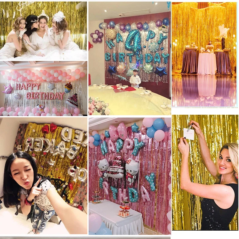 2 м металлические декорации мишура фольга бахрома занавески для дня рождения свадьбы помолвки Baby Shower новый год для праздников и вечеринок украшения