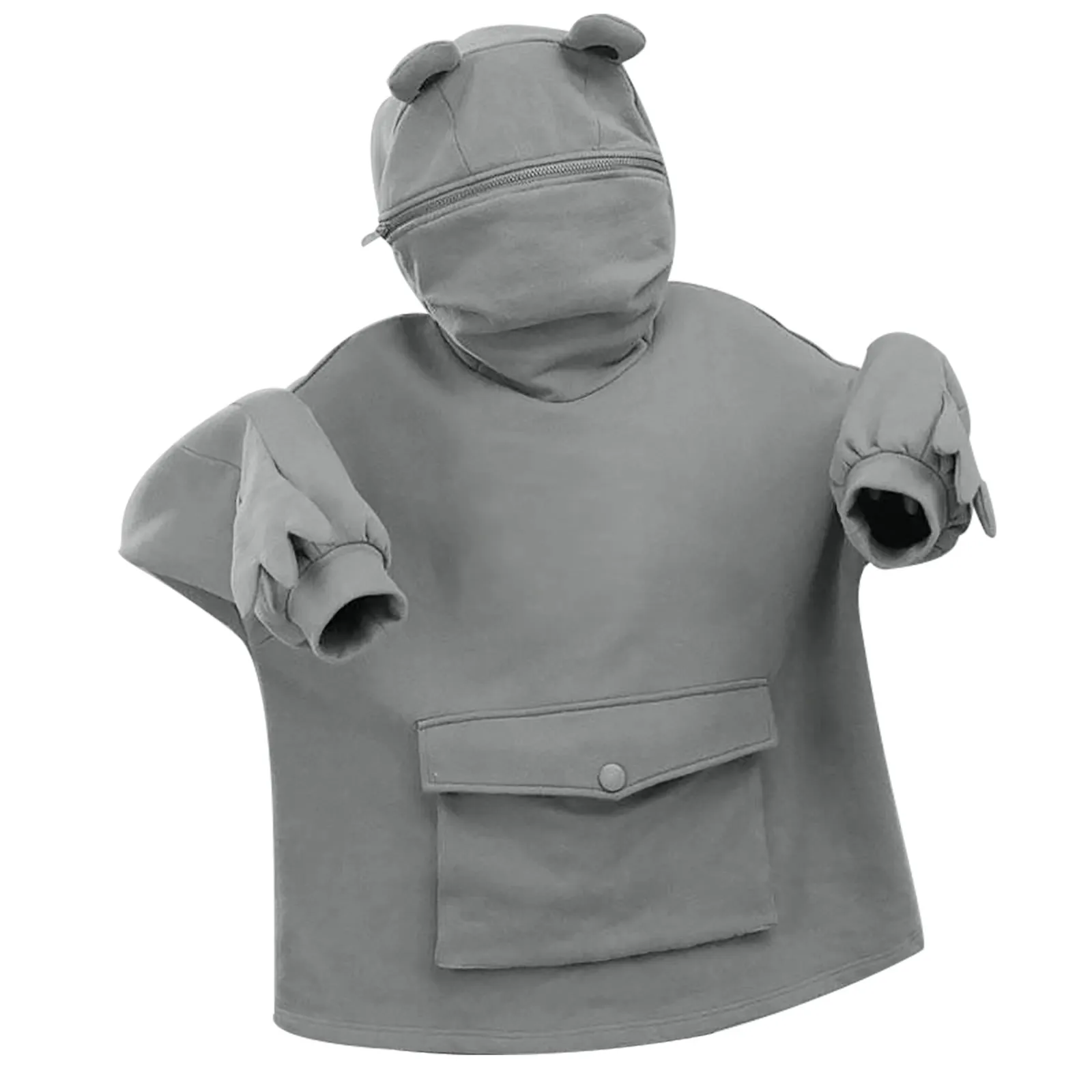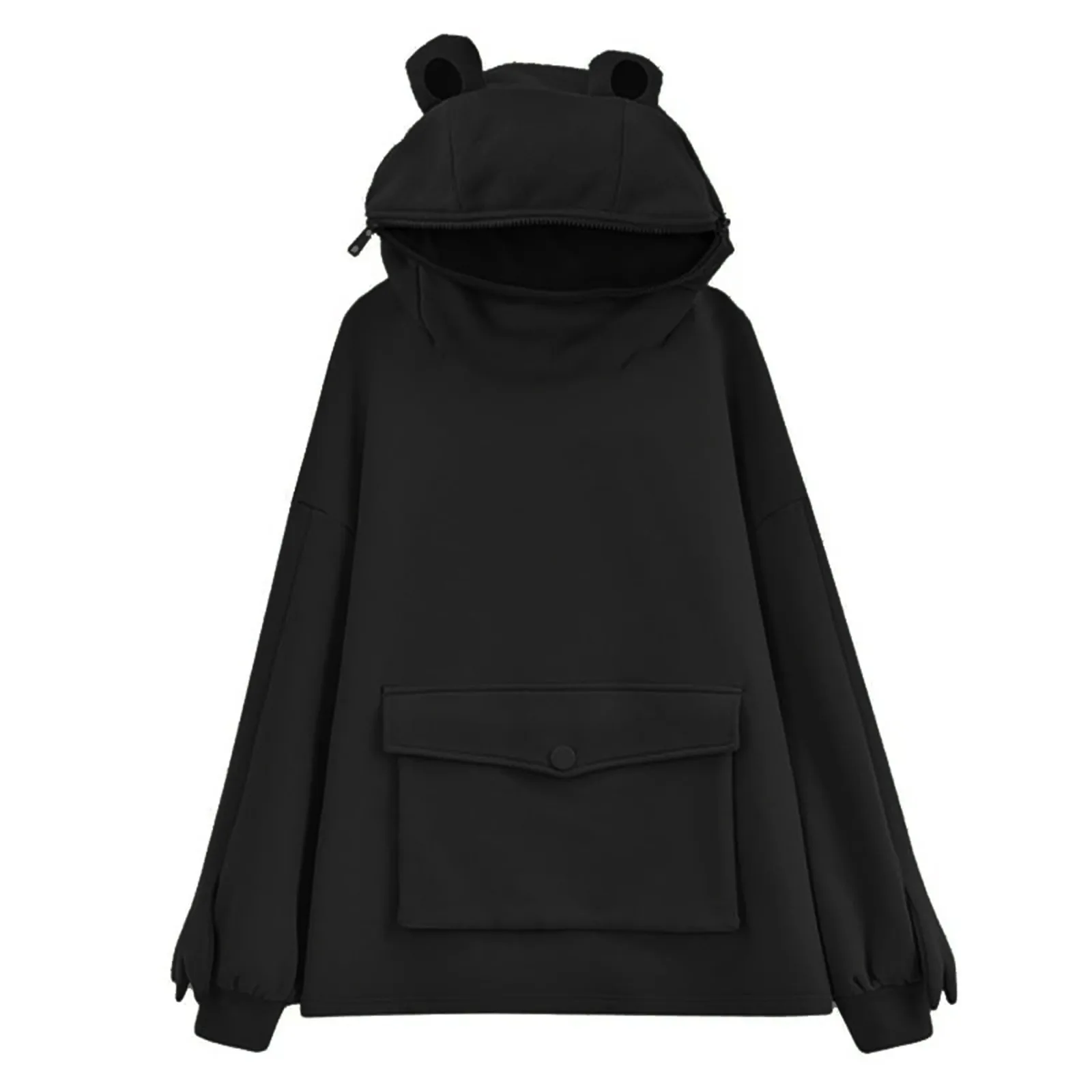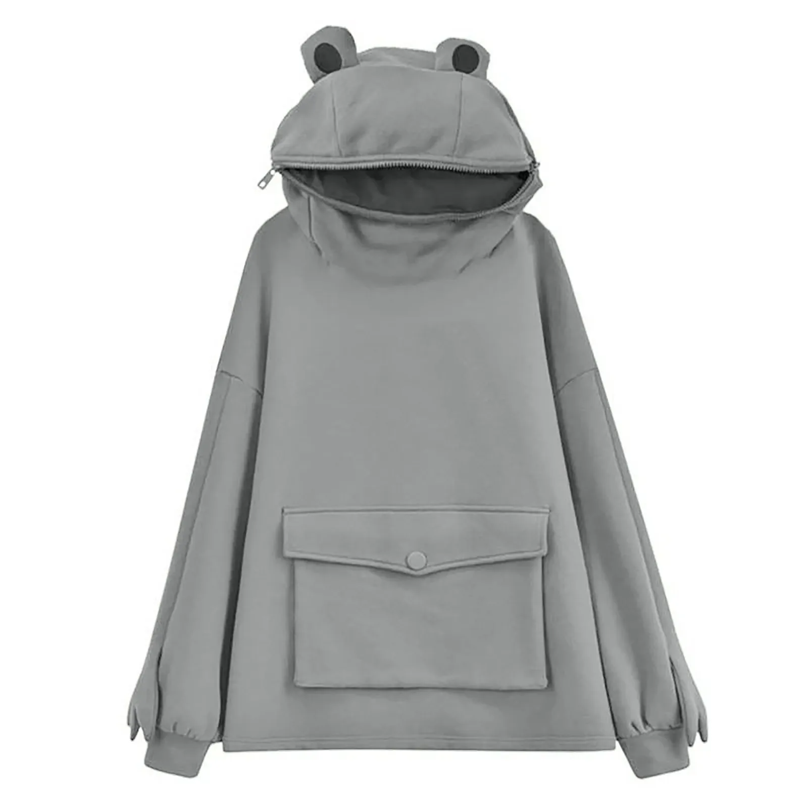 Пуловер в форме лягушки, толстовка с большими карманами, Осень-зима...