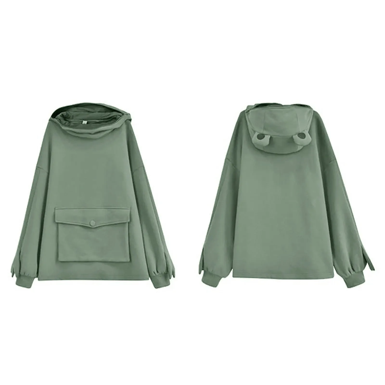 Женская толстовка с капюшоном Kawaii Frog Over size d Harajuku, осе...