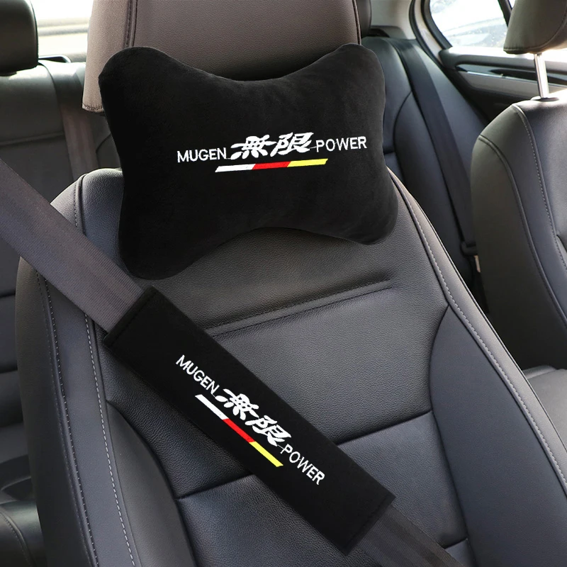 Автомобильная подушка для шеи, 4 шт., подушка для подголовника и ремня безопасности, плечевой ремень для Honda Mugen Power, аксессуары для автостайлинга