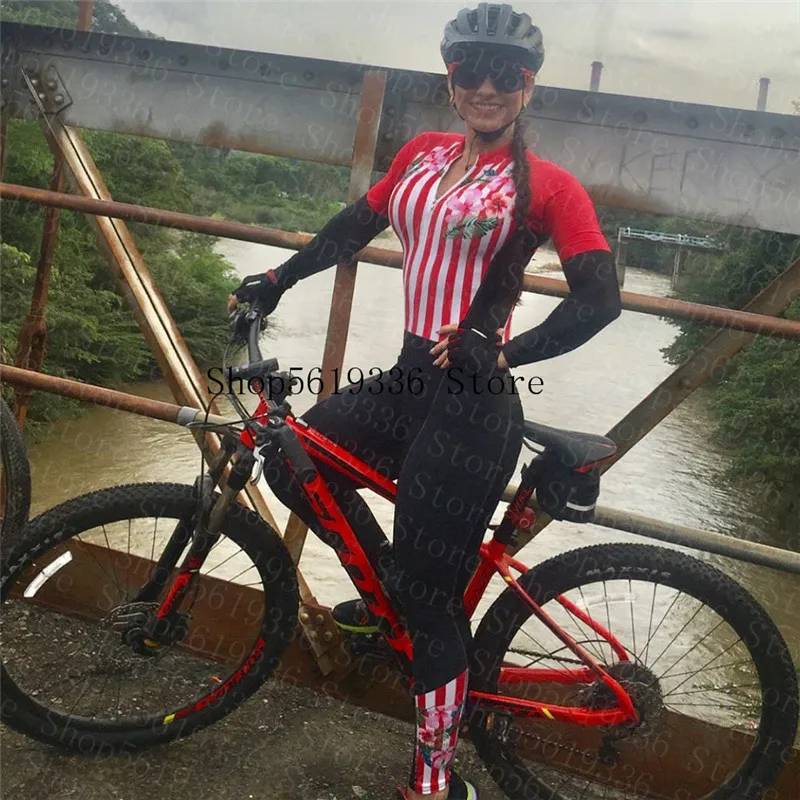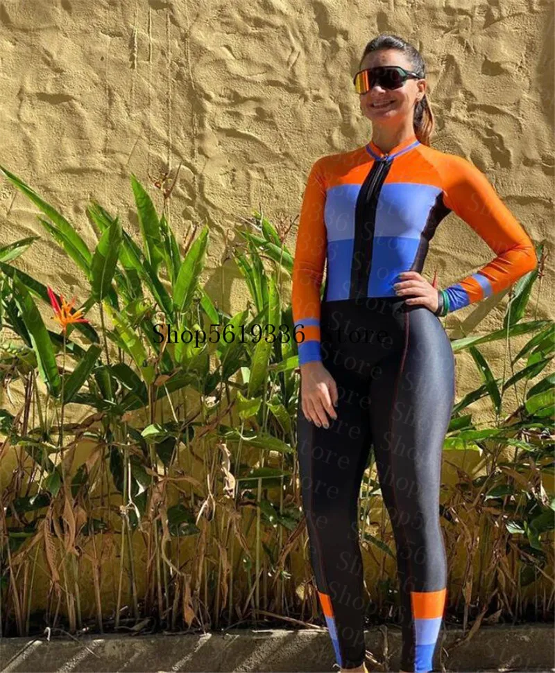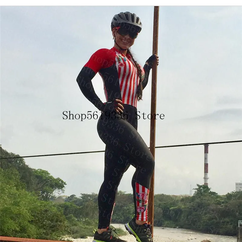Женский триатлоновый комбинезон с длинным рукавом, трикотажный комплект, велосипедный костюм, одежда для велоспорта, летняя одежда для шоссейного велосипеда, Женское боди