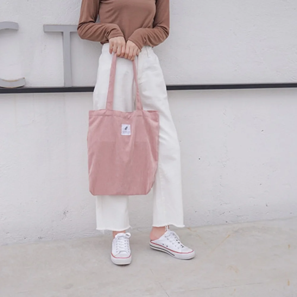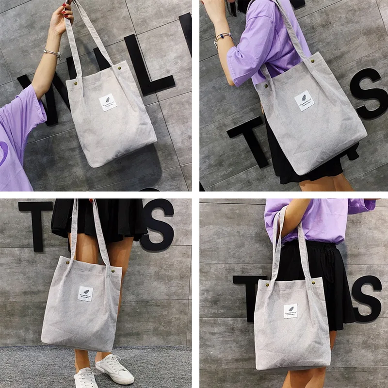 2020 Женские однотонные вельветовые сумки через плечо, посылка для покупок, сумка-тоут, сумки через плечо, кошельки, Повседневная сумка для женщин, сумка для книг