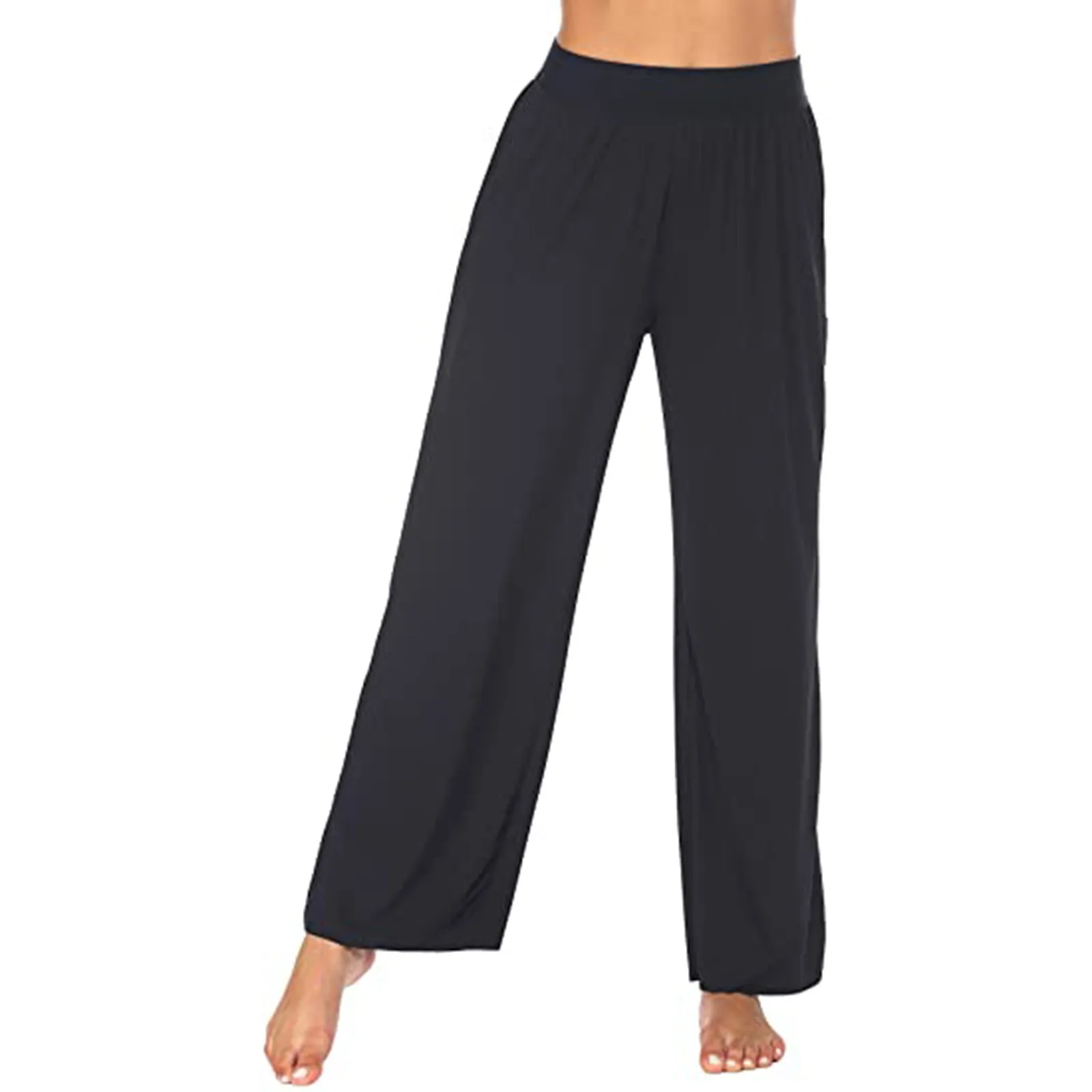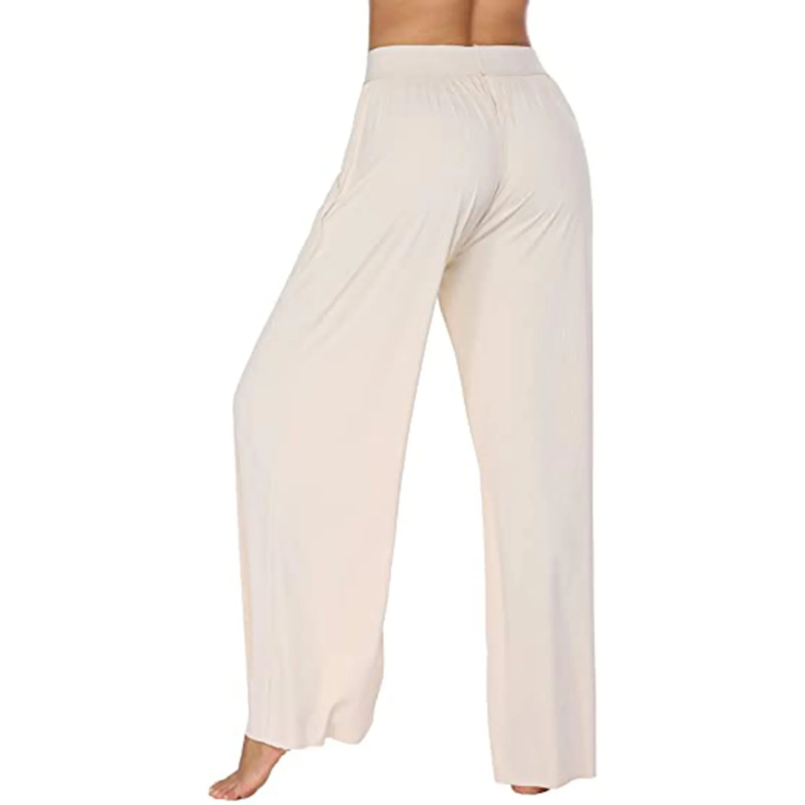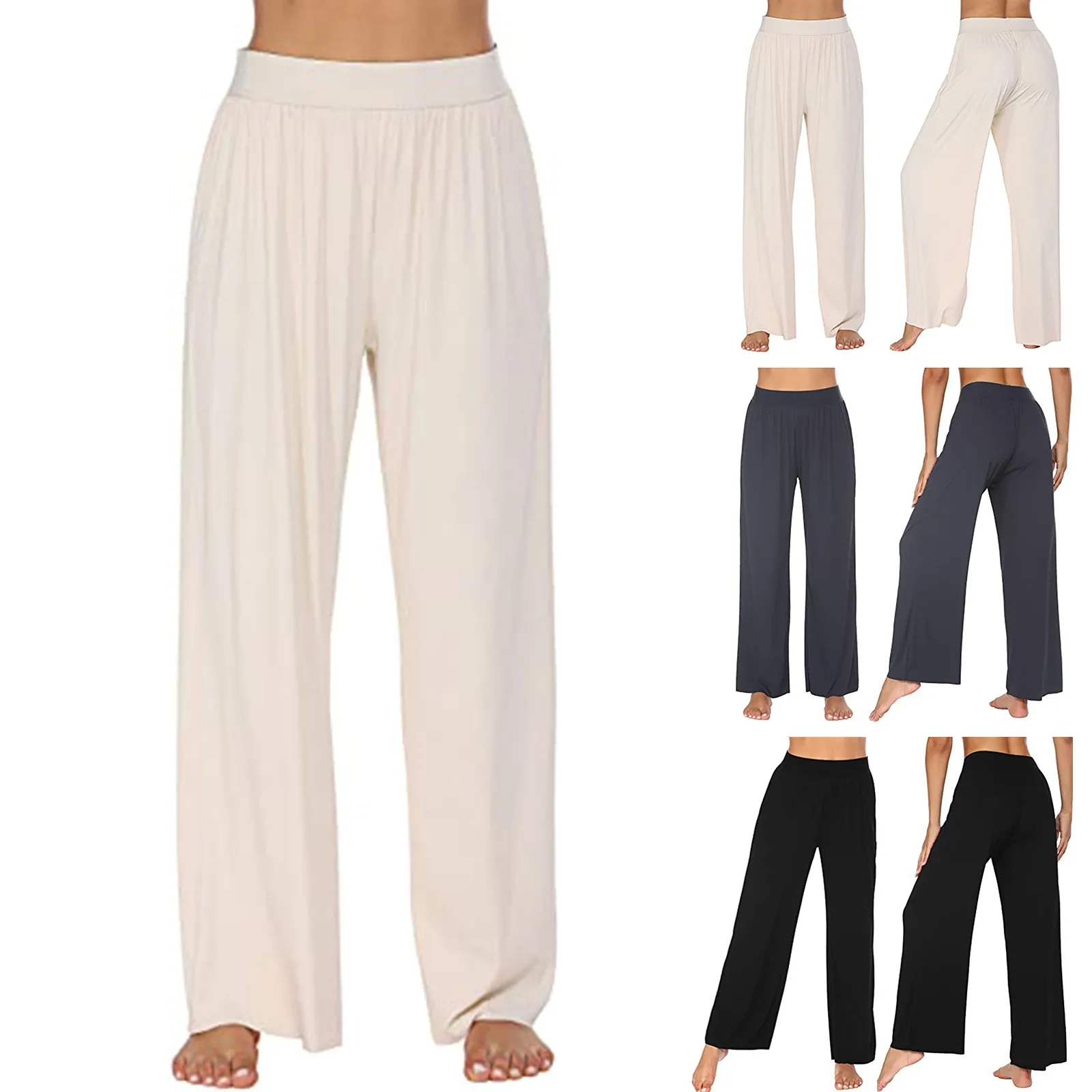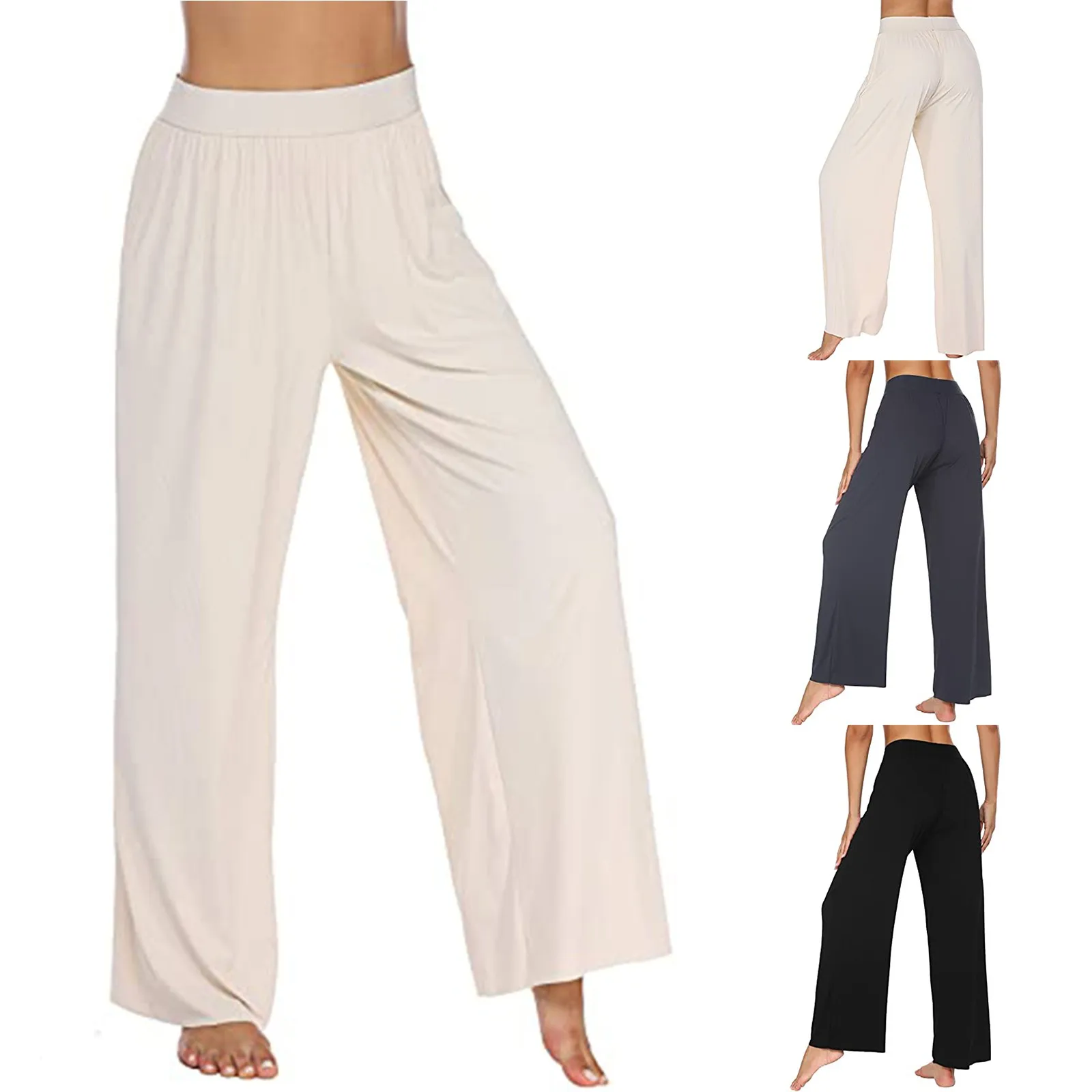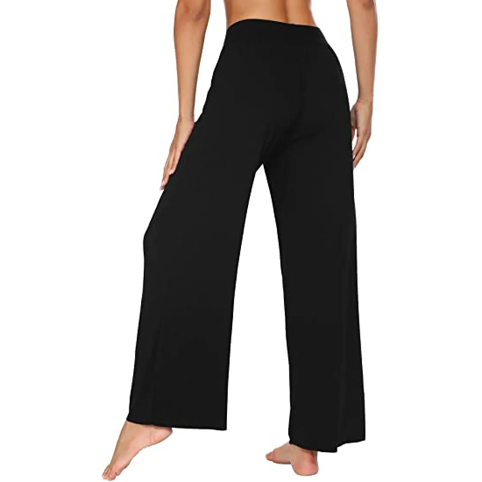 Женские повседневные однотонные удобные пижамы, широкие брюки, длинные штаны для йоги
