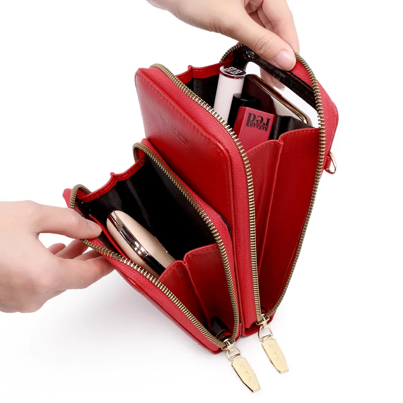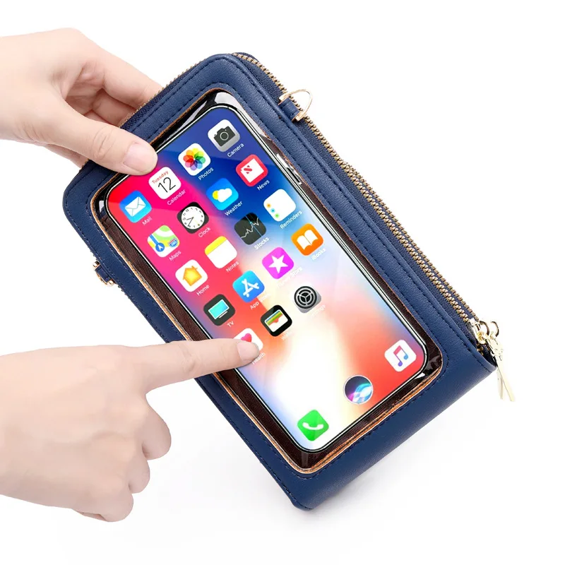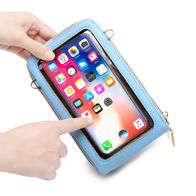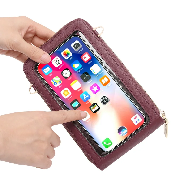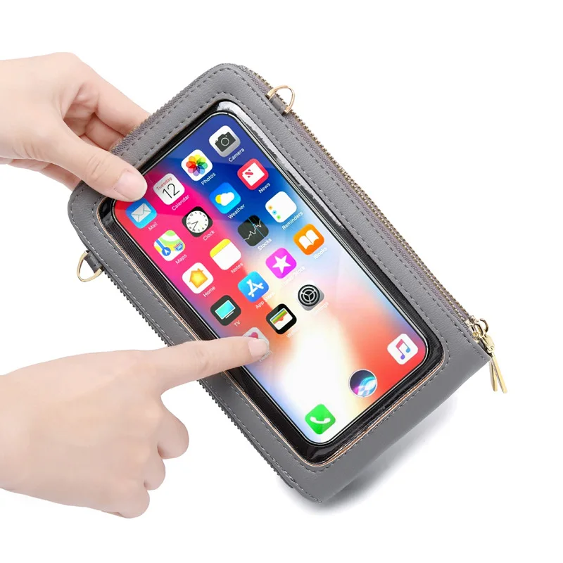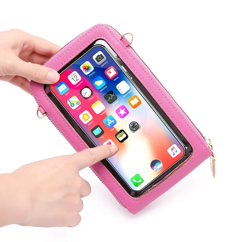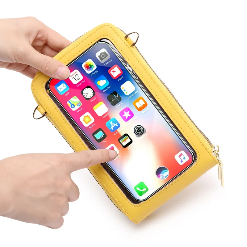 Кожаная сумка для сотового телефона с сенсорным экраном, Карманный Бумажник на плечо, шейный ремешок, задняя гиалиновая Сумочка для Iphone 12, Samsung S30, S20