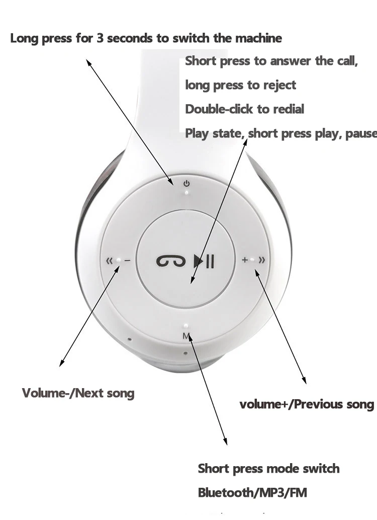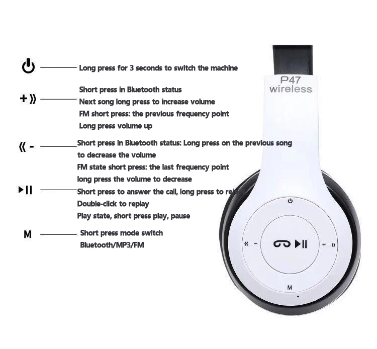 Тип товара: наушники P47 Цвет: белый, черный, зеленый, синий, красный Версия: 5,0 Функция: последняя/следующая песня, воспроизведение/пауза, Отклонение вызова, Siri с одной кнопкой Рабочее расстояние: 10 м Время зарядки: около 2 часов Время работы: около 6-8 часов Аккумулятор для наушников: 300 мАч Частота: 10 кГц ~ 50 кГц Чувствительность: 108 ± 3 дБ Входной ток: 5 в 1 А Импеданс: 32Ω Измерение (около): размер упаковки продукта: Длина: 17 см/6,69 дюйма; Ширина: 11 см/4,33 Дюйм; Высота: 5 см/1,97 дюйма Этот размер измеряется вручную. Может быть небольшая погрешность, фактический размер должен Преобладают в натуральном выражении.