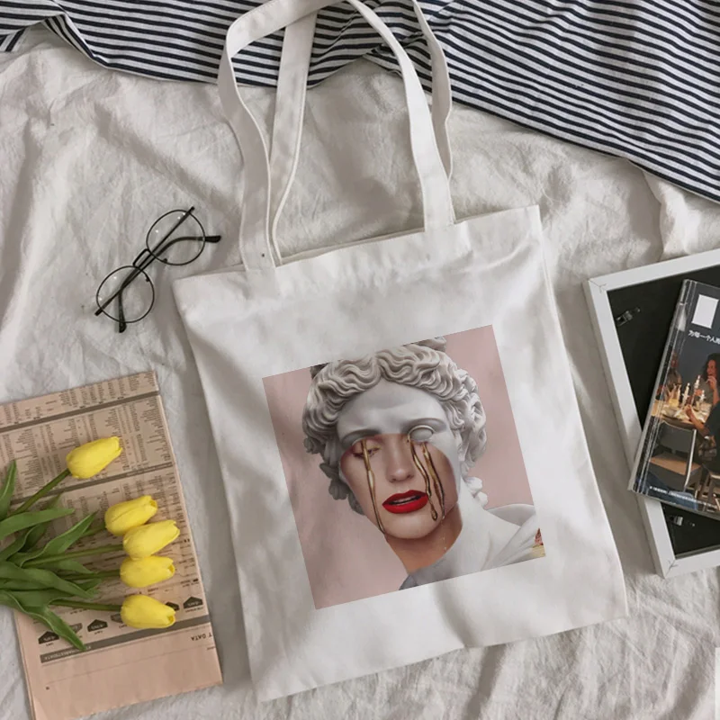 Сумка для покупок в стиле Харадзюку, забавная большая сумочка, кошелек с принтом Давида Микеланджело, розовая Холщовая Сумка на плечо с принтом