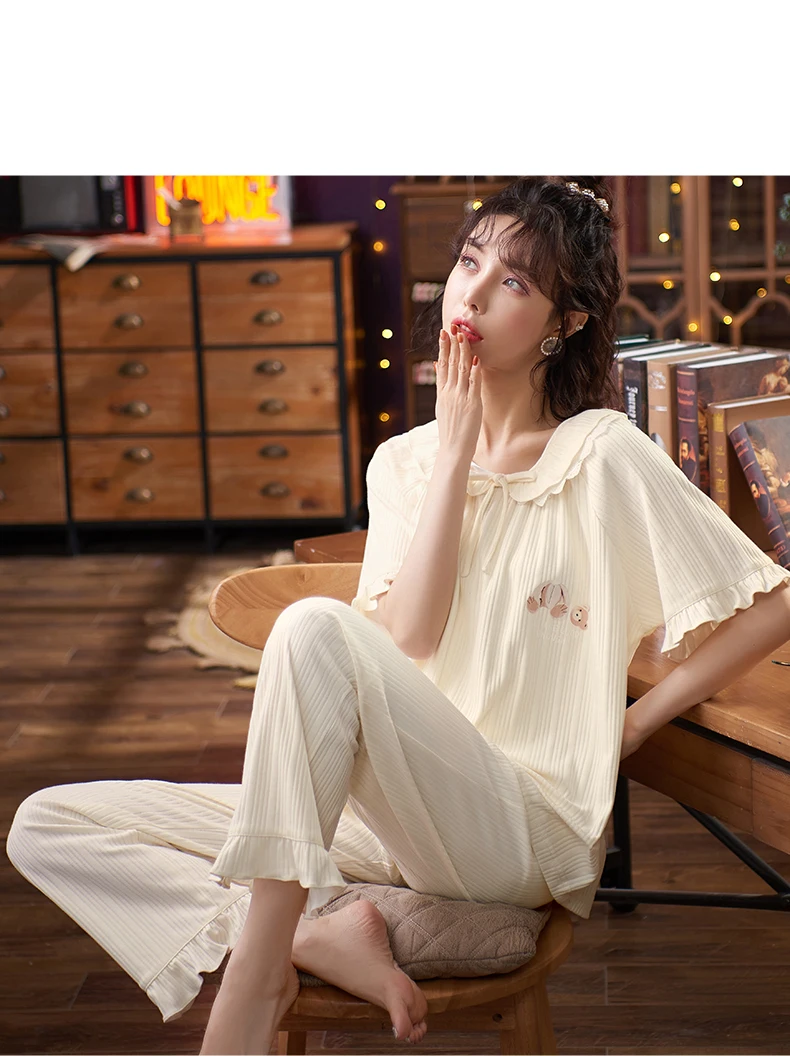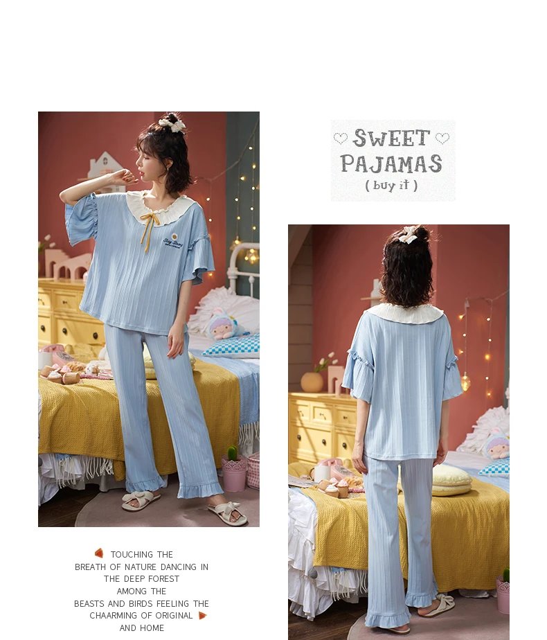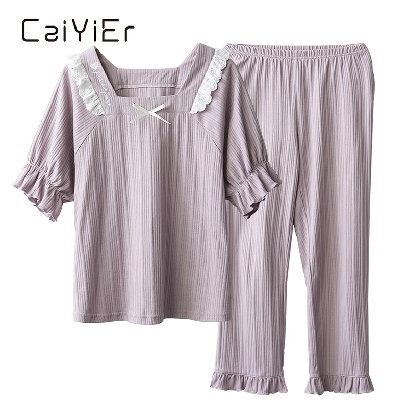 Пижама женская из хлопка, с кружевом, большого размера, весна-осень, 2020