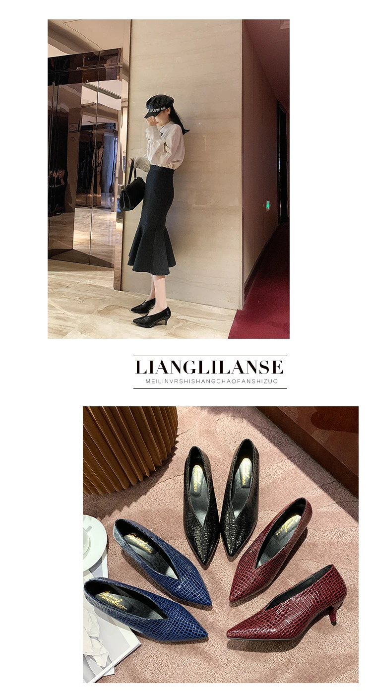 Новые корейские модные туфли на среднем каблуке, на тонком каблуке,...