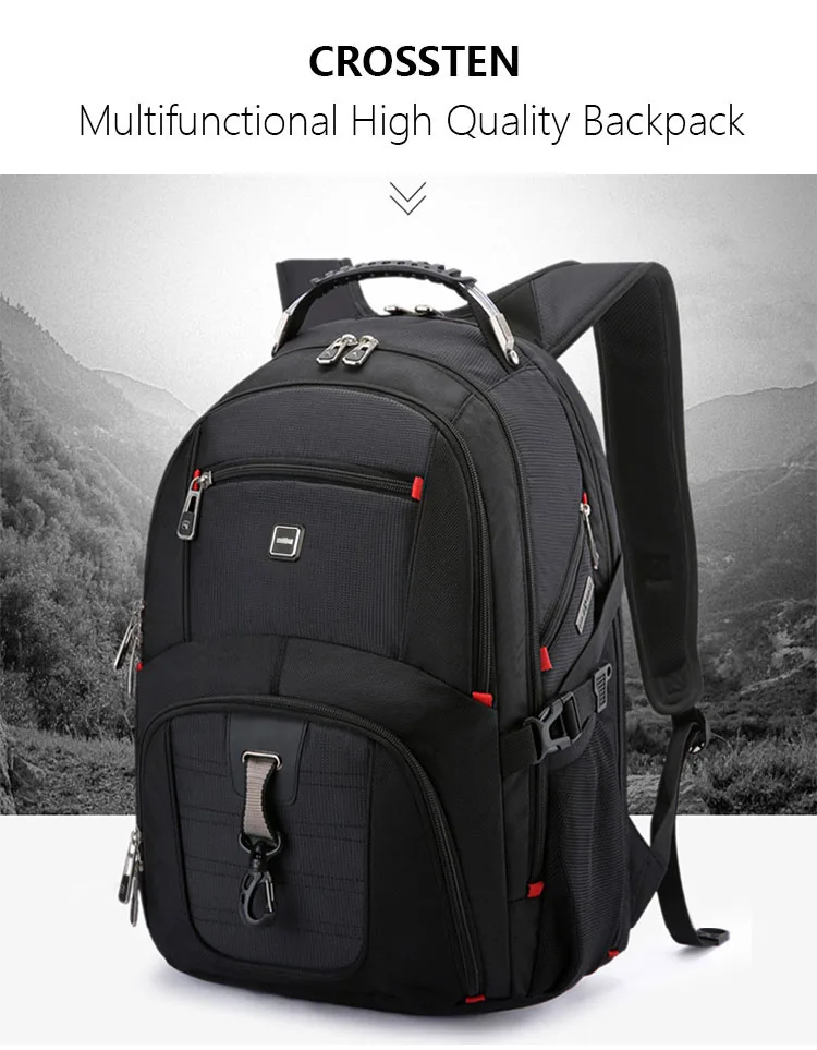 Водонепроницаемый нейлоновый рюкзак Crossten 1680D для ноутбука 17 дюймов, швейцарский Многофункциональный школьный ранец с USB-портом для зарядки