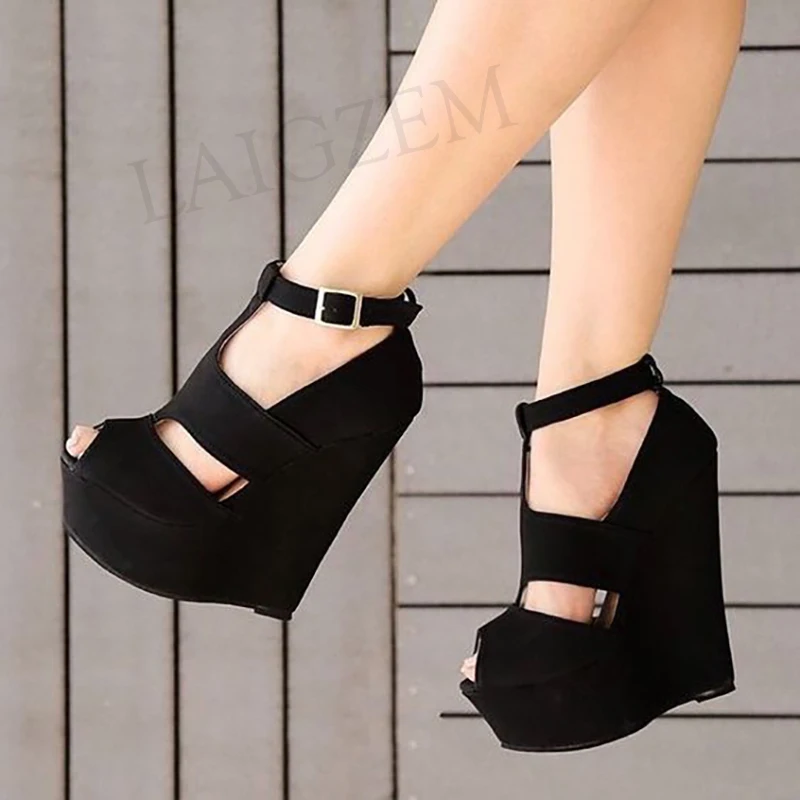 LAIGZEM/женские босоножки на танкетке с открытым носком; Женская обувь на высоком каблуке; Коллекция 2021 года; Летние туфли-лодочки; Женские сандалии; Femme; Большие размеры 41, 42, 44, 50, 52