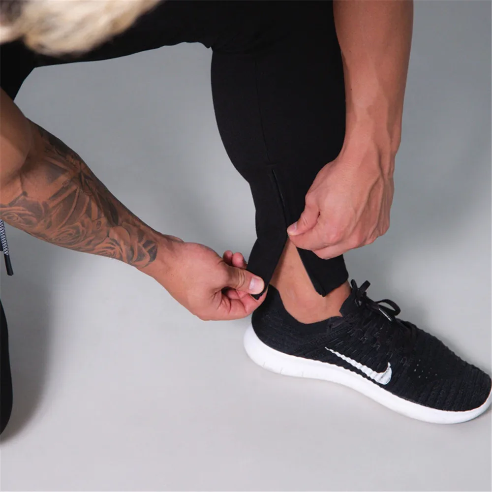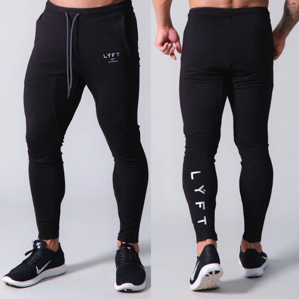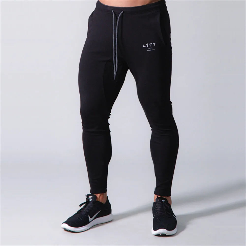 Черные брюки для бега, хлопковые облегающие спортивные штаны, спортивные штаны для тренажерного зала, фитнеса, мужские тренировочные штаны для бодибилдинга